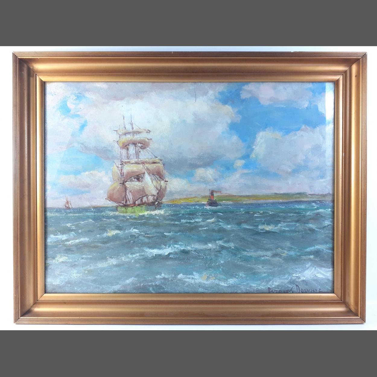 An acrylic on paper framed maritime scene signed by Patrick DOWNIE, frame size 67cm x 52cm approx,