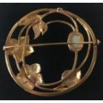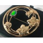 In the style of JOANNA THOMSON, a 375 stamped and hallmarked brooch of flowers with an opal (1.5cm length approx) diameter 6cm, gross weight 23.72g approx