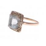 A 14K stamped yellow gold dress ring with a large central aquamarine stone (8mm x 10mm approx) with a pierced surround size S gross weight 4.45g approx