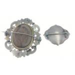 Two unmarked Victorian mourning brooches to include a larger brooch complete with hair (backing glass missing), 6cm x 5.5cm approx, gross weight 16.93g approx and the smaller pinchbeck complete with lock of hair 4cm x 3.5cm, gross weight 11.35g approx