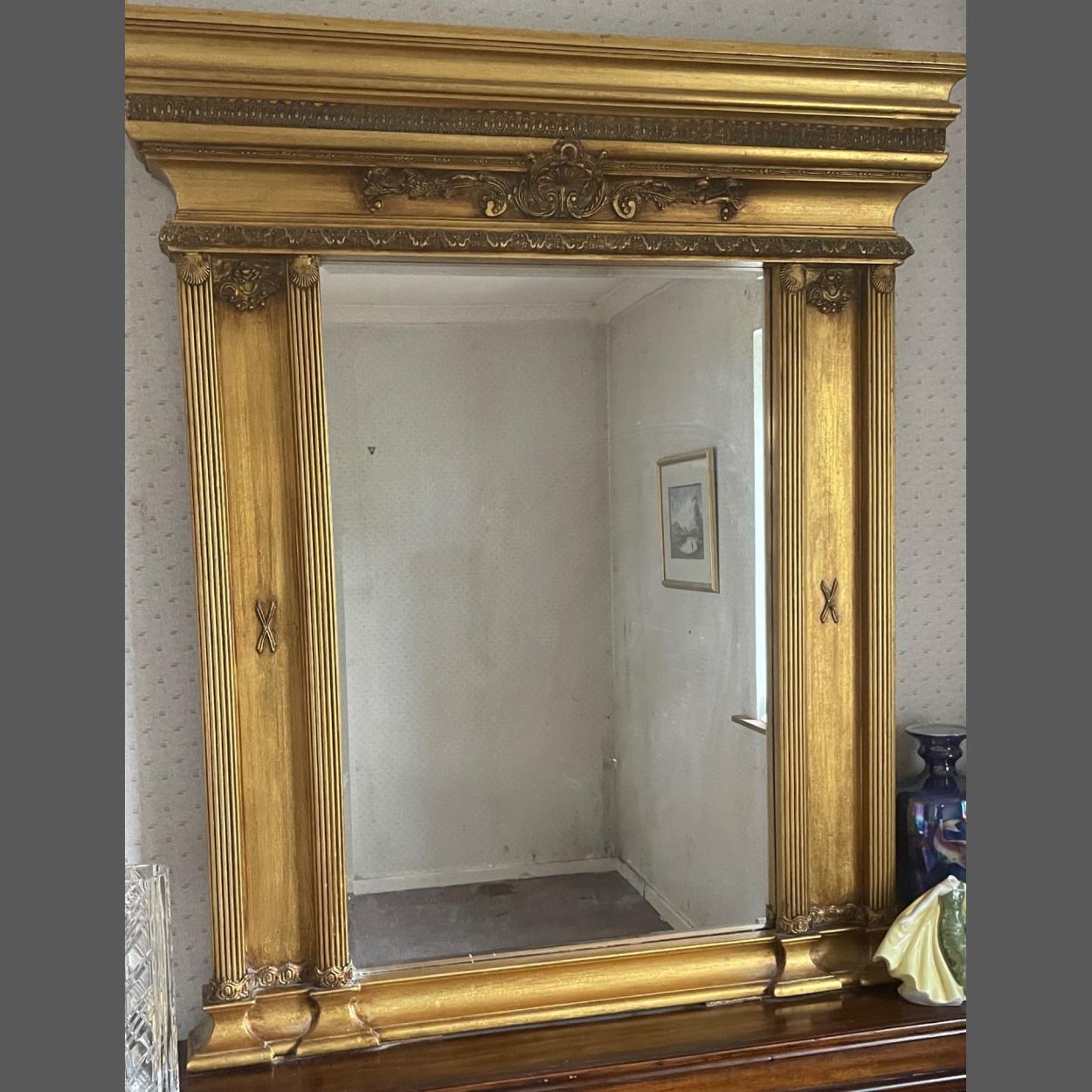 A large gilt neo- classic design over-mantle mirror of the highest quality / dimensions 3.5ft height x 2.75ft width aporox