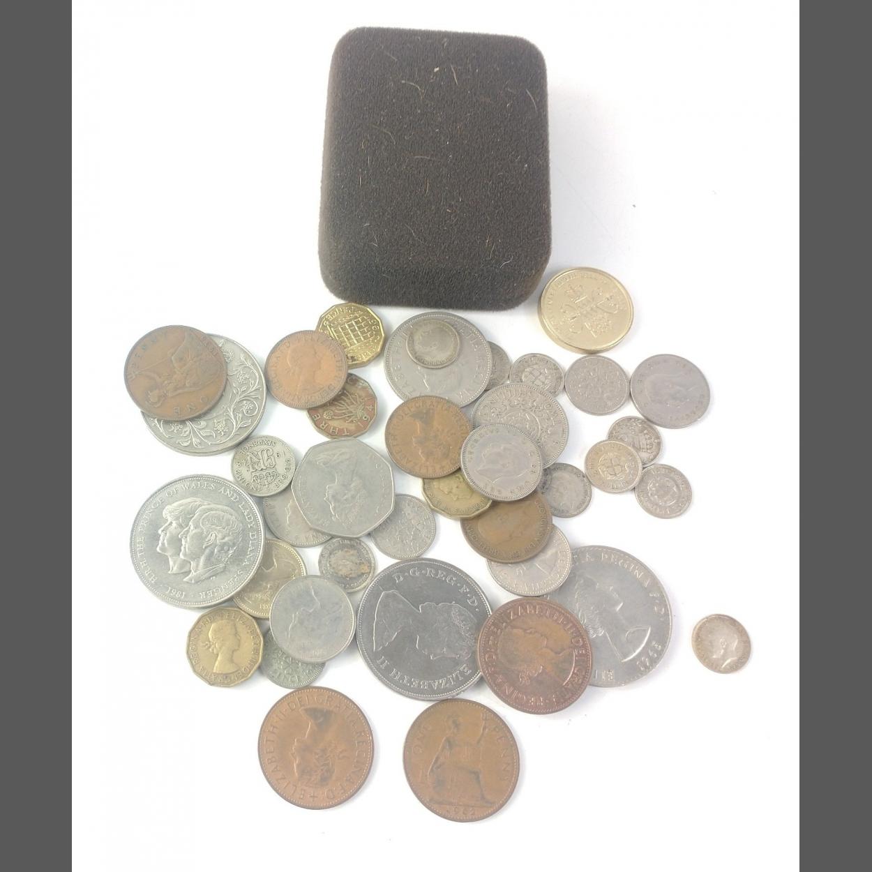 A small collection of UK coinage to include 10 x 0.500 three pences (weight 13.90 g approx), plus a tercentary of the Bill of Rights 2 pound coin, also a 1977 silver jubilee coin, 2 1981 Charles & Diana coins and a Churchill 1965 coin and various other obsolete UK coinage