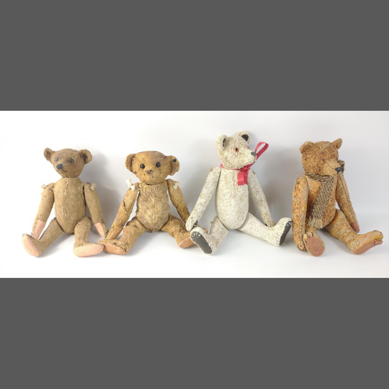 Four unusual articulated resin teddy bears each approx 20cm tall