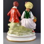 A SITZENDORF couple with a gentleman playing the pipes and lady sitting with a basket of flowers and a resting sheep, standing approx 18cm high with no visible damage