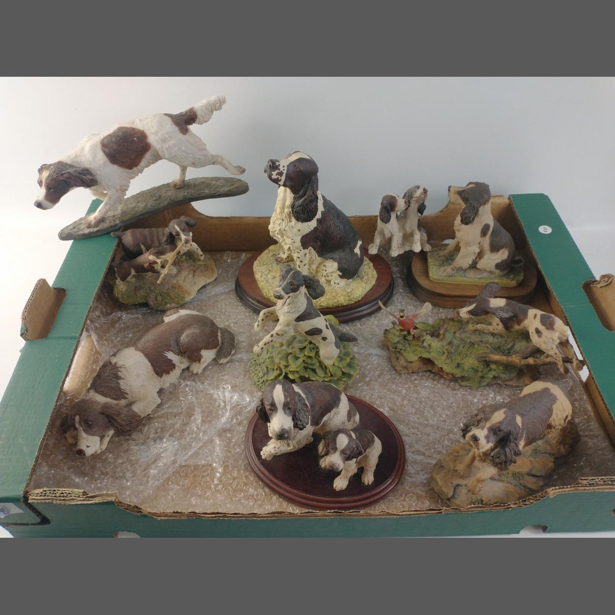 Ten figurines of spaniels to include from Border Fine Arts by AYRES 1981, JA BUTLER 1991, MARGARET TURNER 1993, also from HEREDITIES and DANBURY MINT. One dog is missing part of its stick and one tiny chip from one base but otherwise all in good order