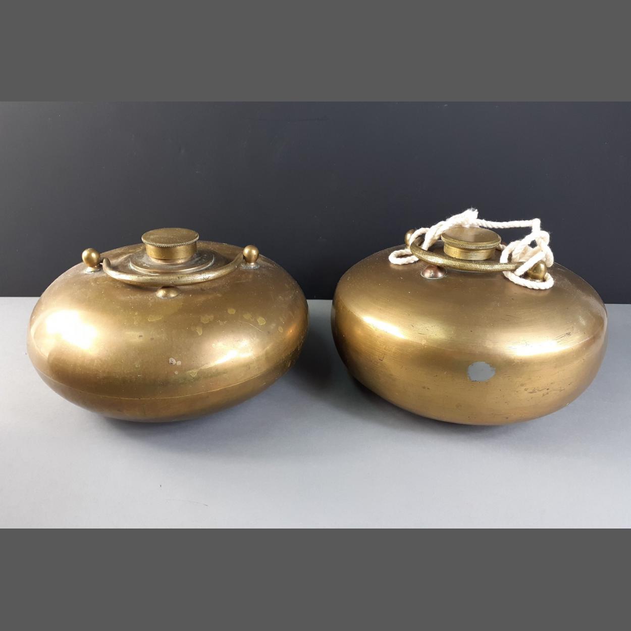VINTAGE - Two CHINESE brass hot water canisters diameter each approx 20cm