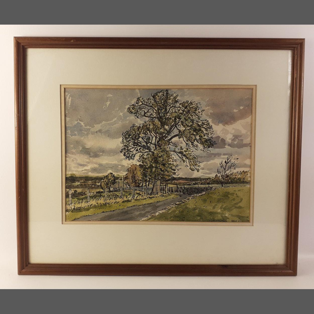 An original watercolour of a countryside scene by PETER KIRLEY (1983), frame size 55cm x 46cm approx, visible work 36cm x 26cm approx