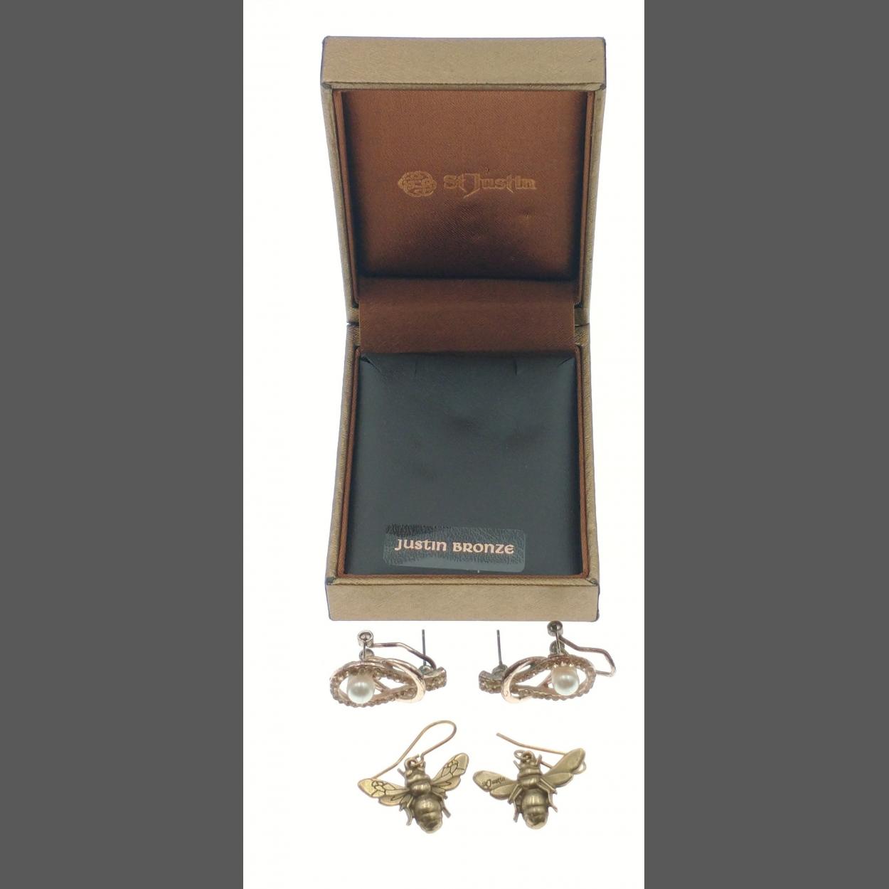 UNUSUAL! A pair of JUSTIN BRONZE bumblebee hook earrings 2cm long plus 1 other pair