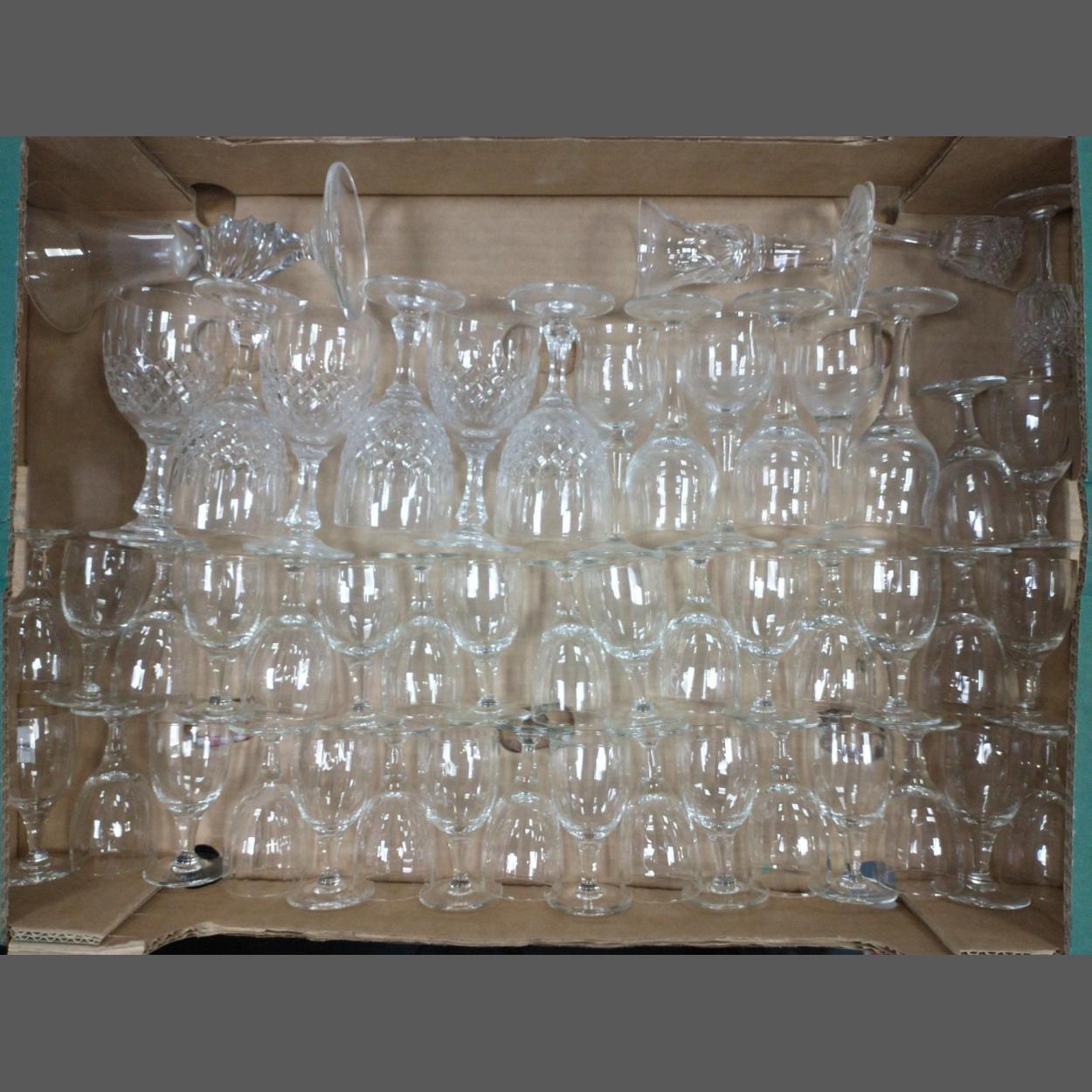 A tray of mainly liqueur glasses including a massive 34 of the same design