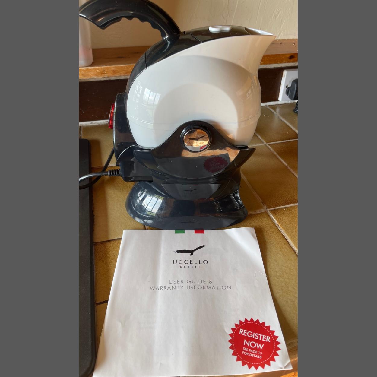 A UCCELO pivotal kettle complete with user instructions - a safer kettle for the infirm!