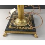 A beautifully classic candlestick table lamp with square gold-embossed leather-like base measuring approx. 78cm in height.