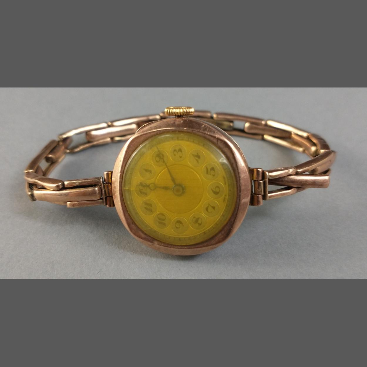 A 9ct gold cased ladies cocktail watch. 9ct marks to centre bands of the bracelet. Watch not currently running. Case marks Chester 1942. A pretty litte watch. Total gross weight 17g approx.