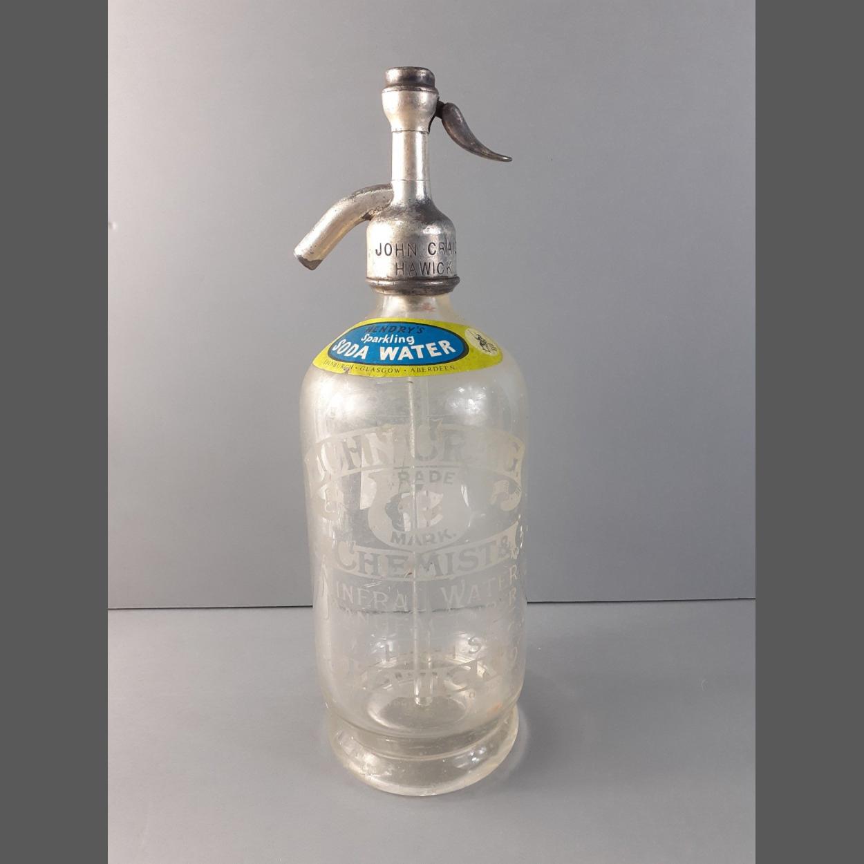 TERIBUS YE TERI ODIN ! HAWICK interest, John Craig, Chemist, 17 High Street, Hawick. A British Syphon Co. Soda Syphon with handrys stick on paper label. Stands 30cm high approx. A lovely old thing !