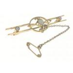 15ct stamped bar brooch with two seed pearls and a central small opal. Total gross weight 4.58g approx.