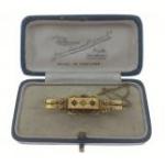 A gorgeous 15ct stamped Victorian bar brooch set with a centre diamond and two garnets and with working safety clasp. All in a rather lovely Australian jeweller’s box. Gross weight 2.98g approx.