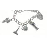 Silver charm bracelet with multiple charms. Total gross weight 32.5g approx.