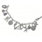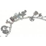 Silver charm necklet with multiple charms. Total gross weight 91g approx.