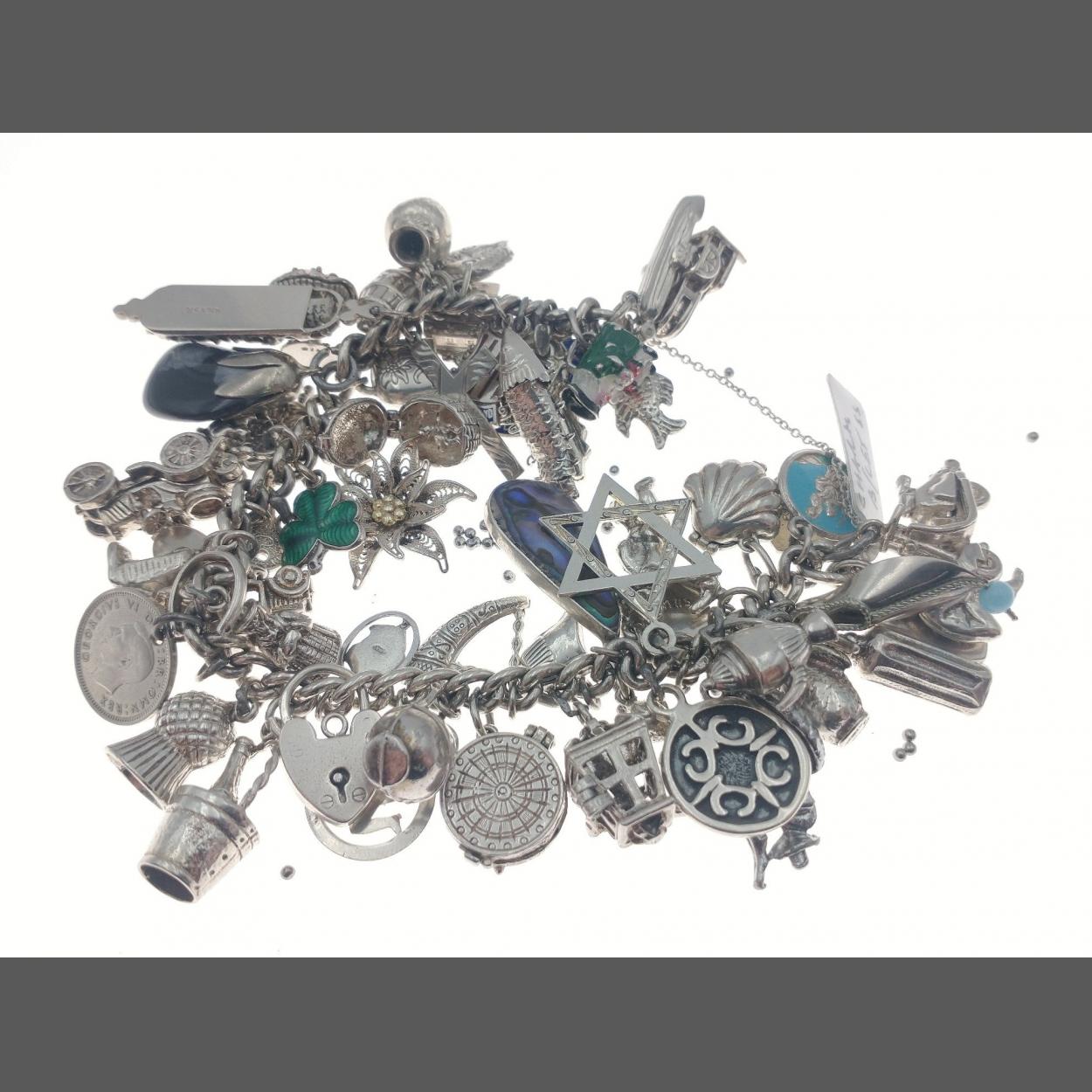 Silver charm bracelet with many many superb charms and a gross weight of 141.5g approx. A gorgeous bracelet.