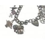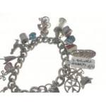 Silver charm bracelet with multiple world charms of interest. Total gross weight 83g approx