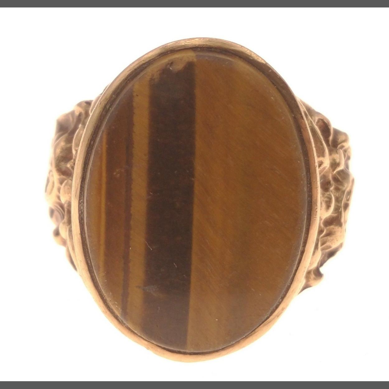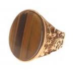 A TIGERS EYE 9ct (faint) stamped SUBSTANTIAL ring size R/S - gross weight 8.91g approx