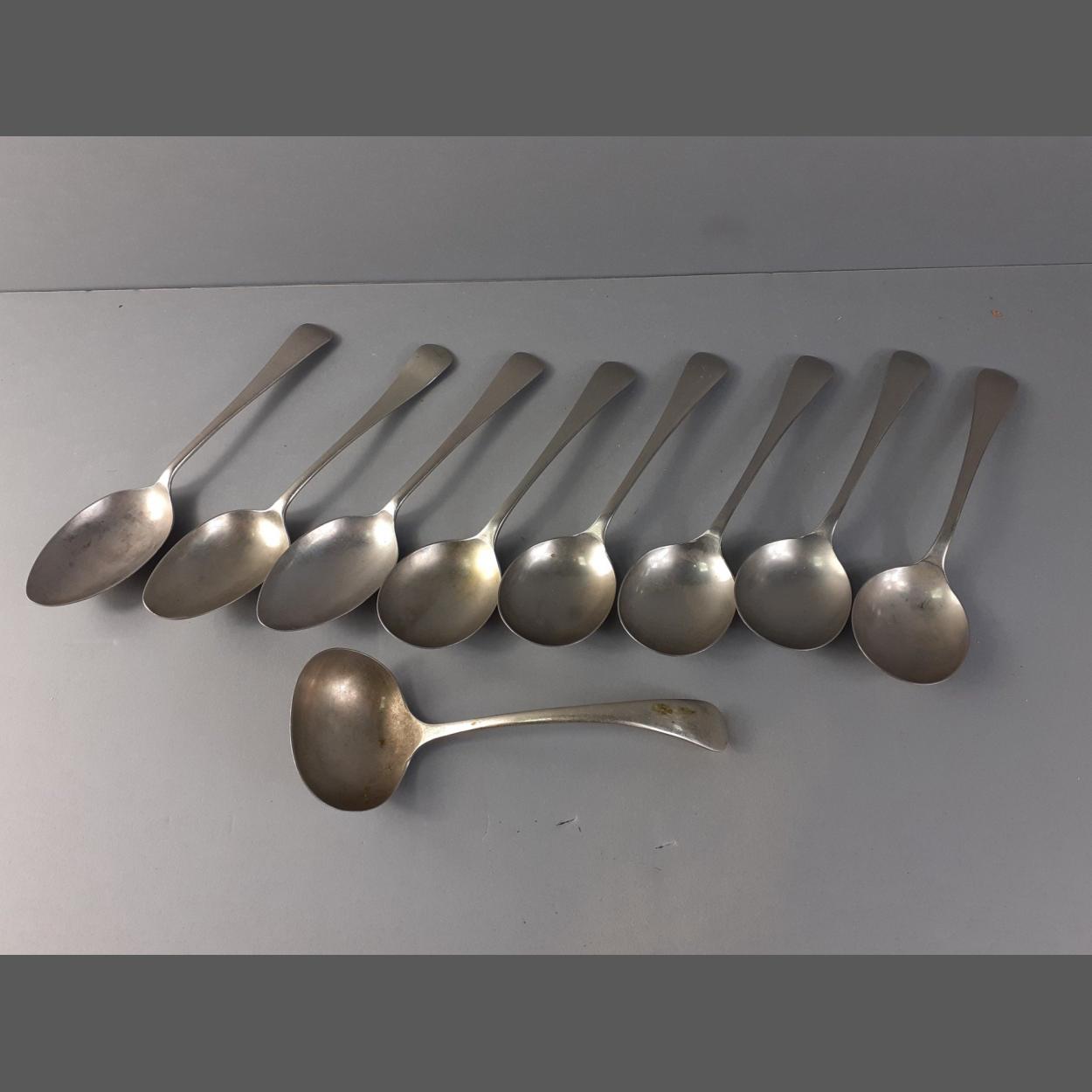 A selection of quality of EPNS spoons, 17cm long, plus one ladle, includes by VINER & HALL, weight 407g approx