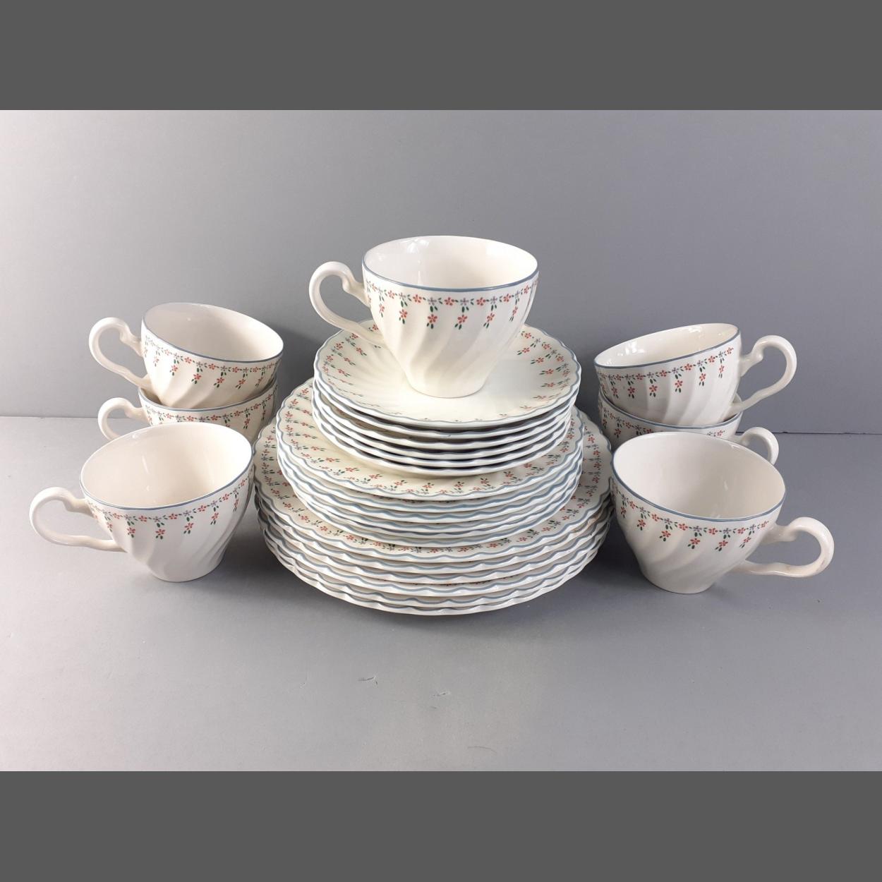 A JOHNSON BROS Dreamland dinner service to include 7 teacups, 6 saucers, 6 dinner plates, and 6 side plates, some crackle effect on some plates