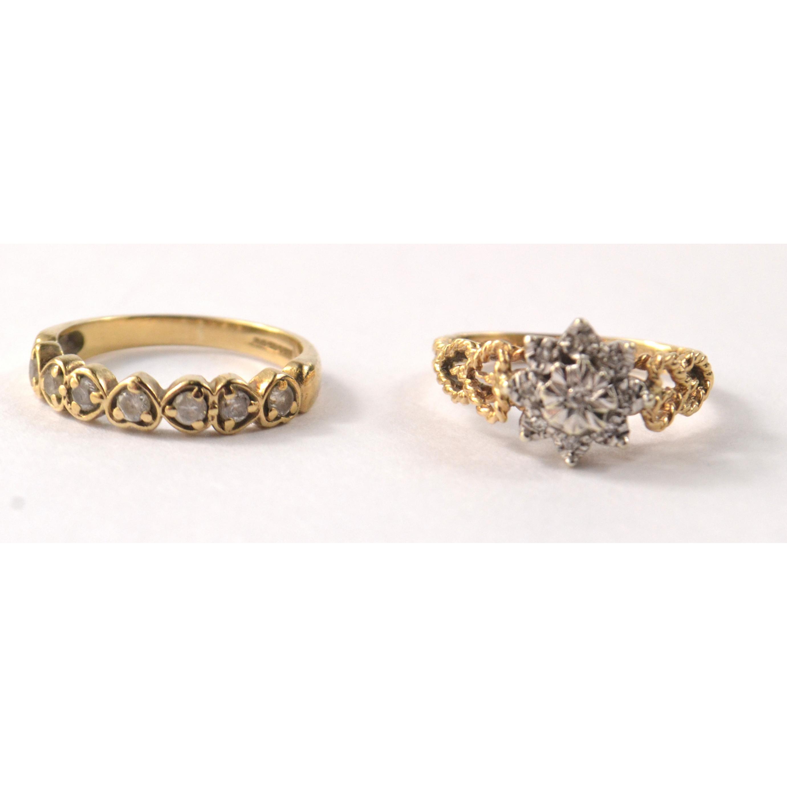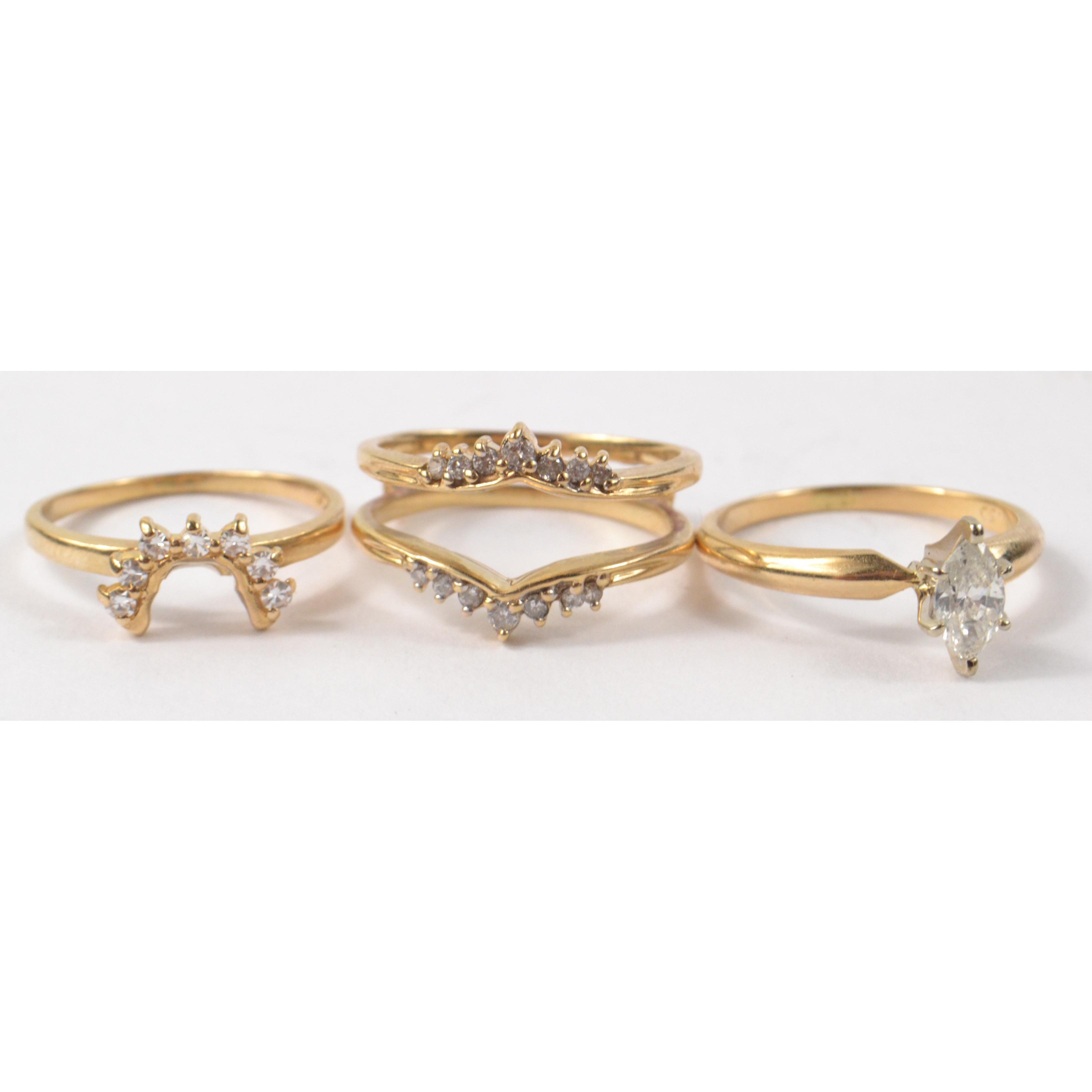 UNUSUAL Set of 3 14k yellow gold rings set with diamonds