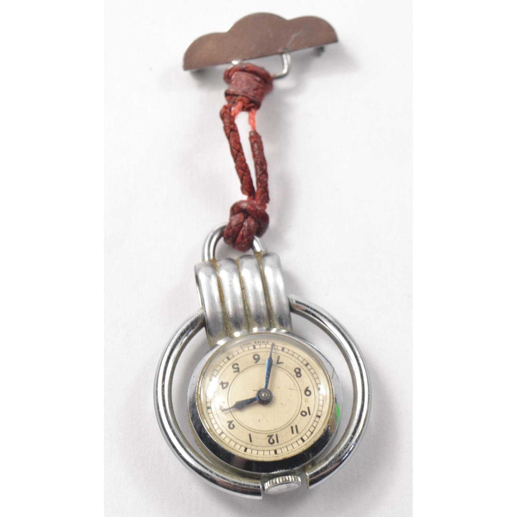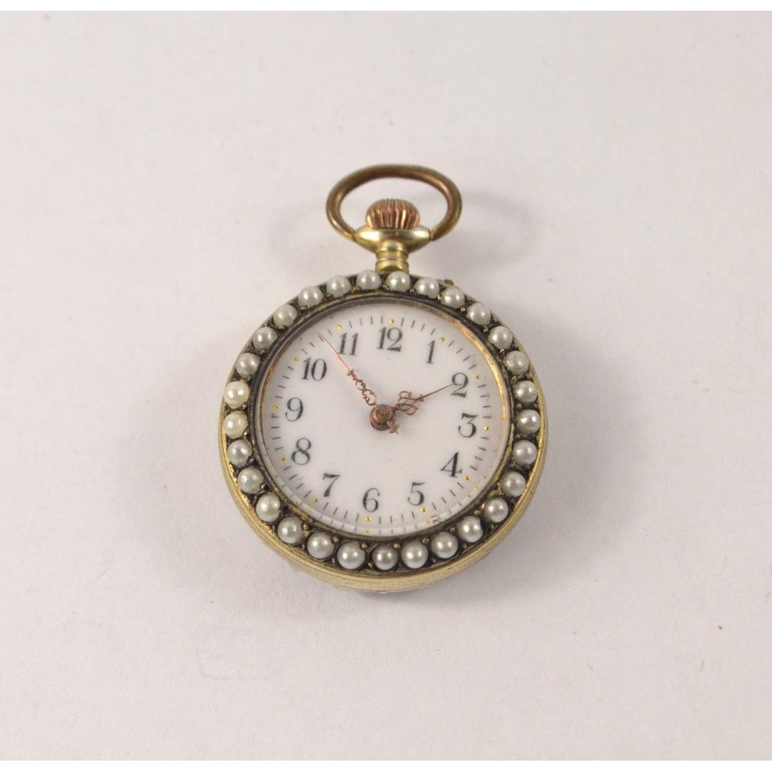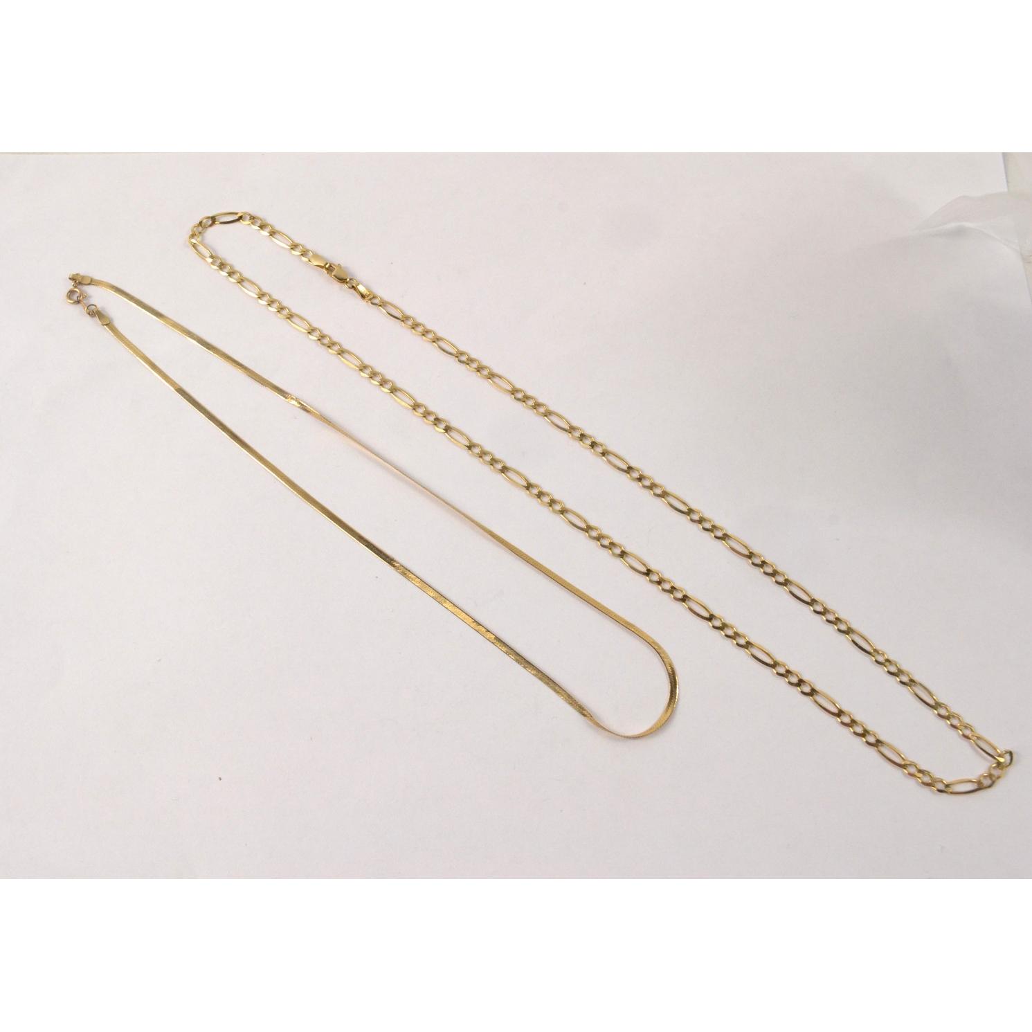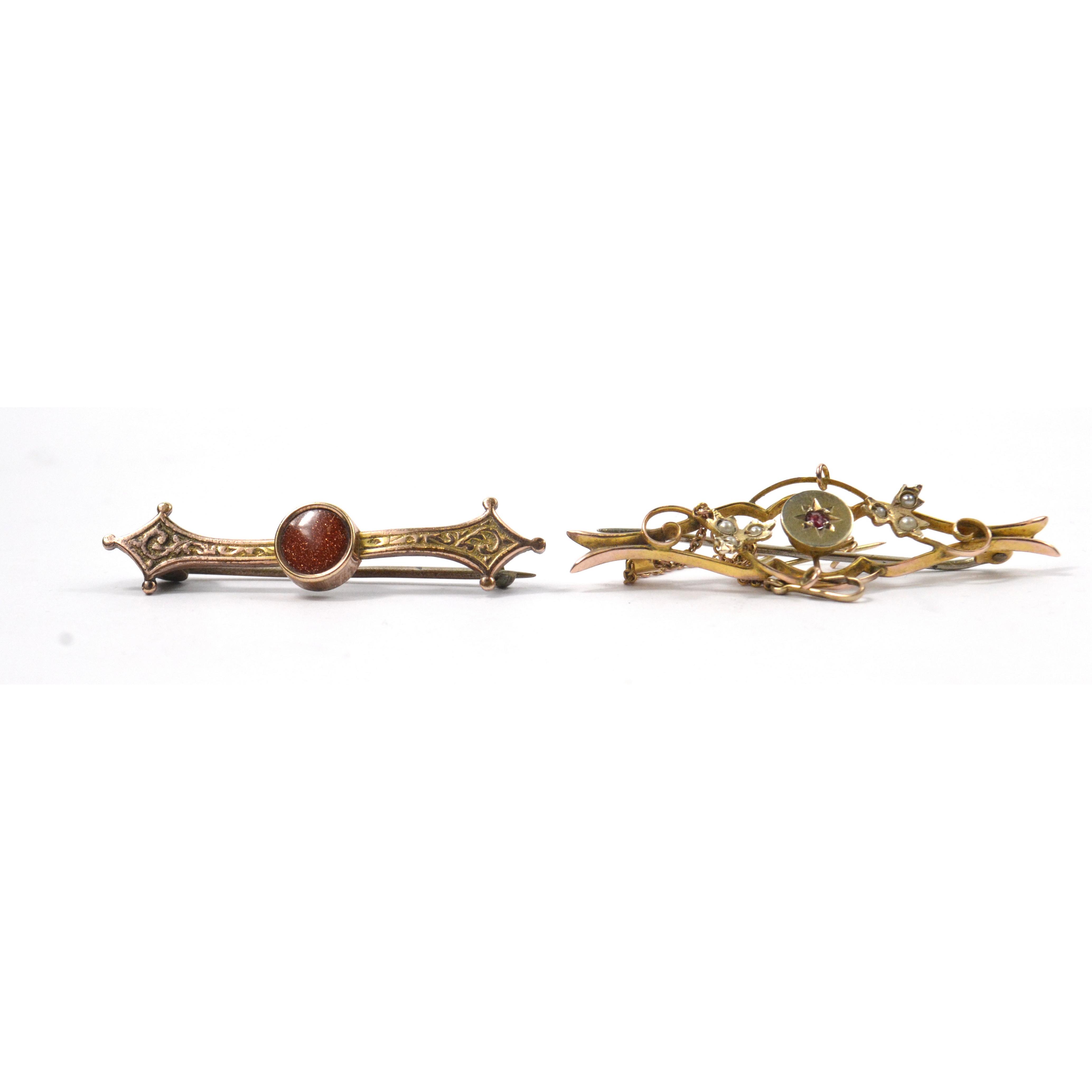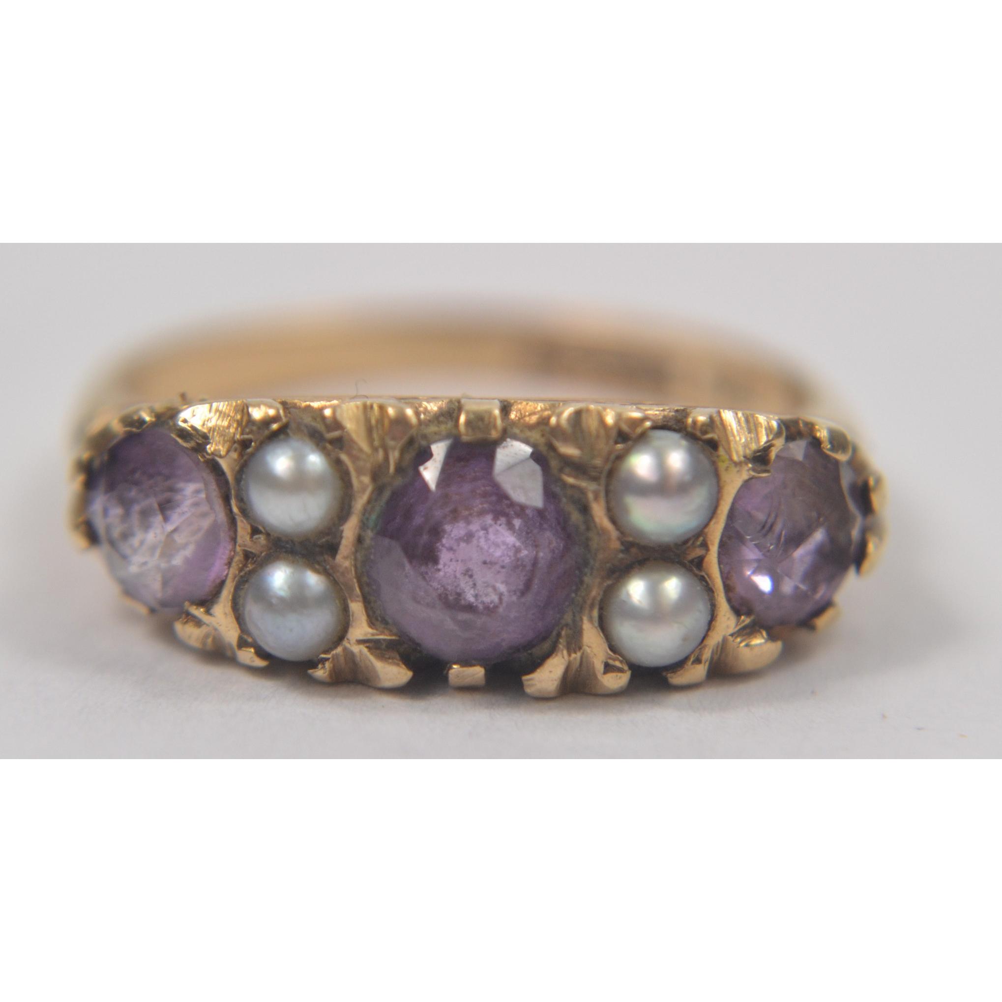 A stamped 9ct gold chain 40cm Length approx, 2.73g, with a 9ct vintage brooch with purple stone and seed pearl style gross weight 3.28g 4cm Length
