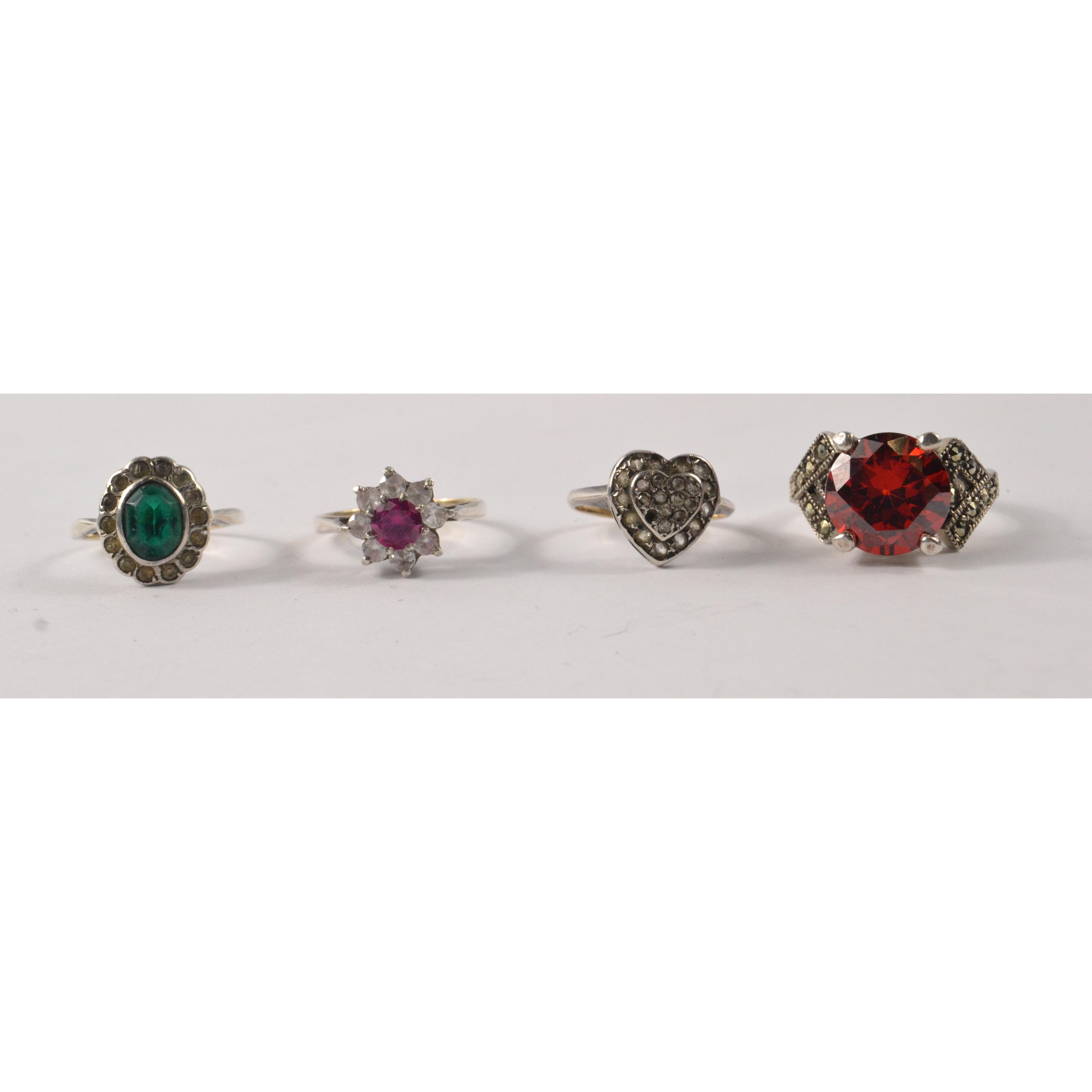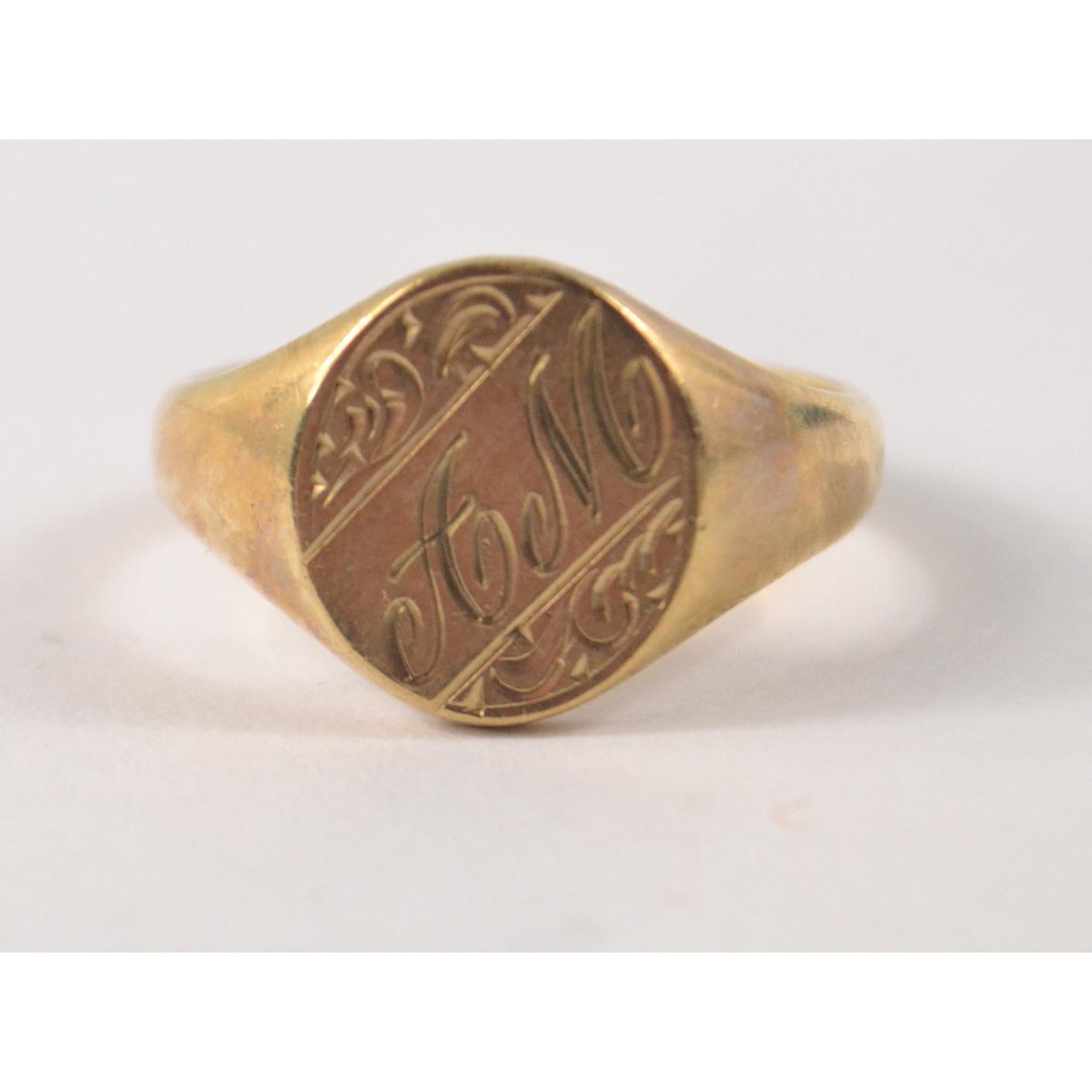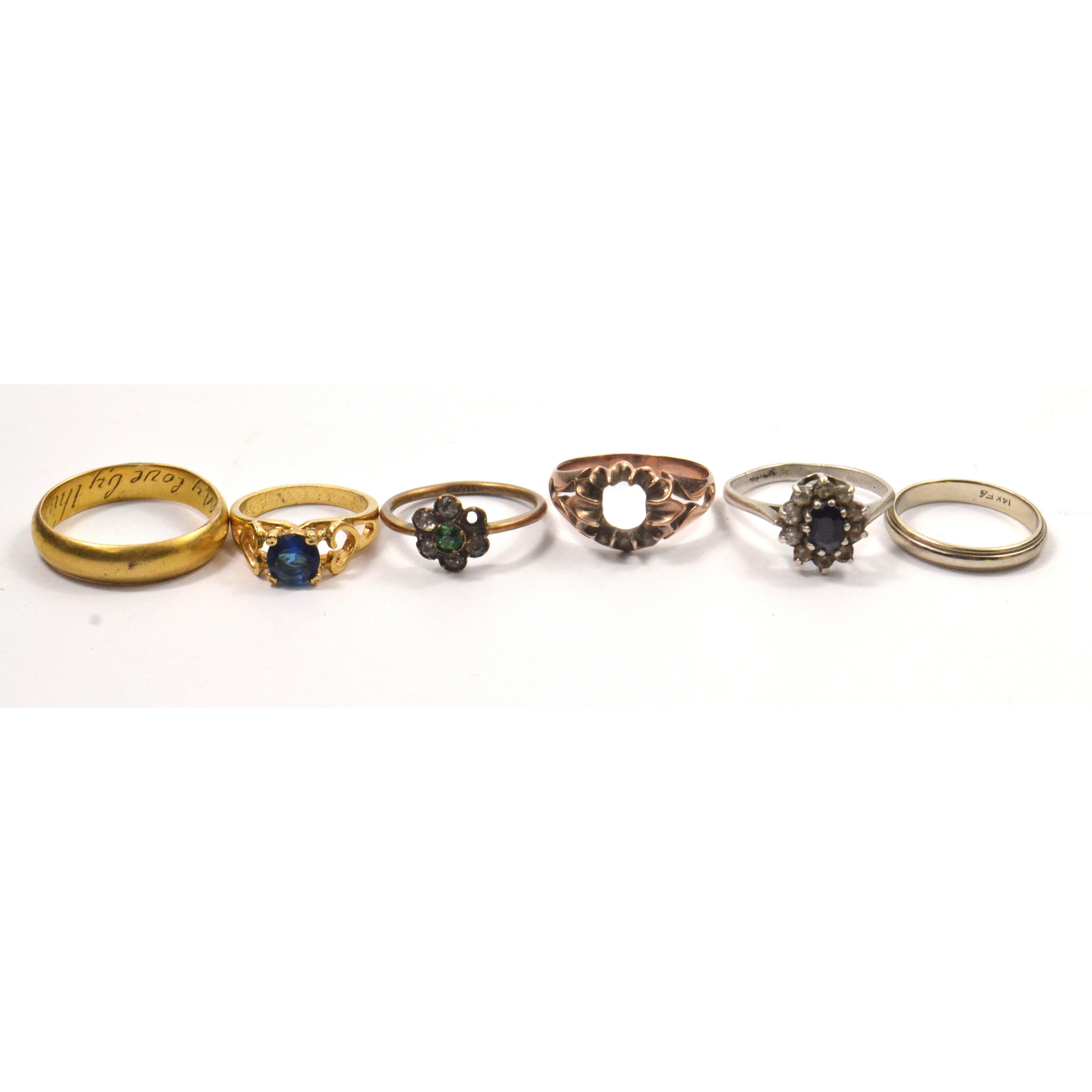 375 stamped gold gents signet ring missing it's stone 1.87g size Q, also a 375 stamped gold ladies dress ring with sapphires and clear stone, one diamond missing gross weight 3.21g size O