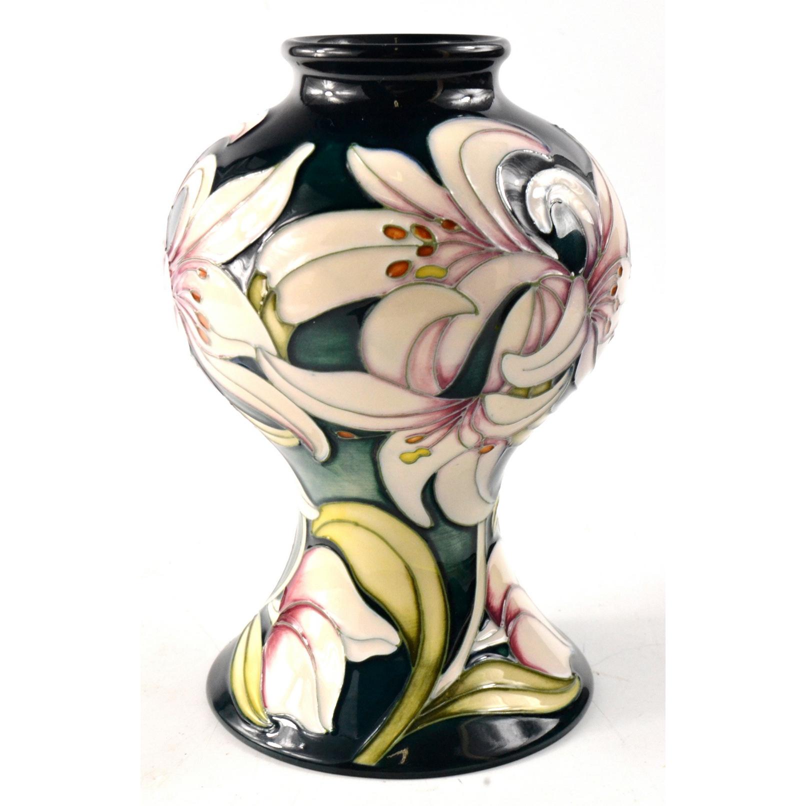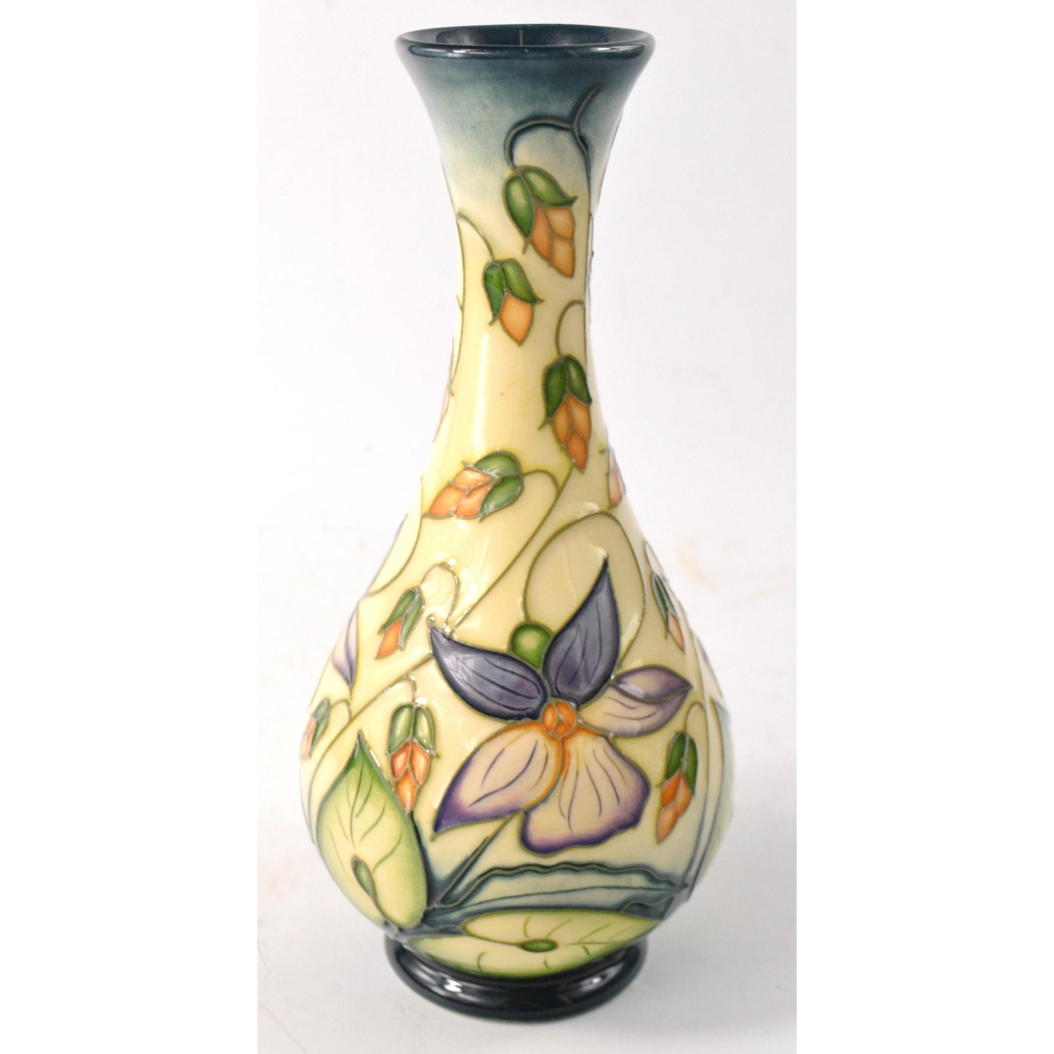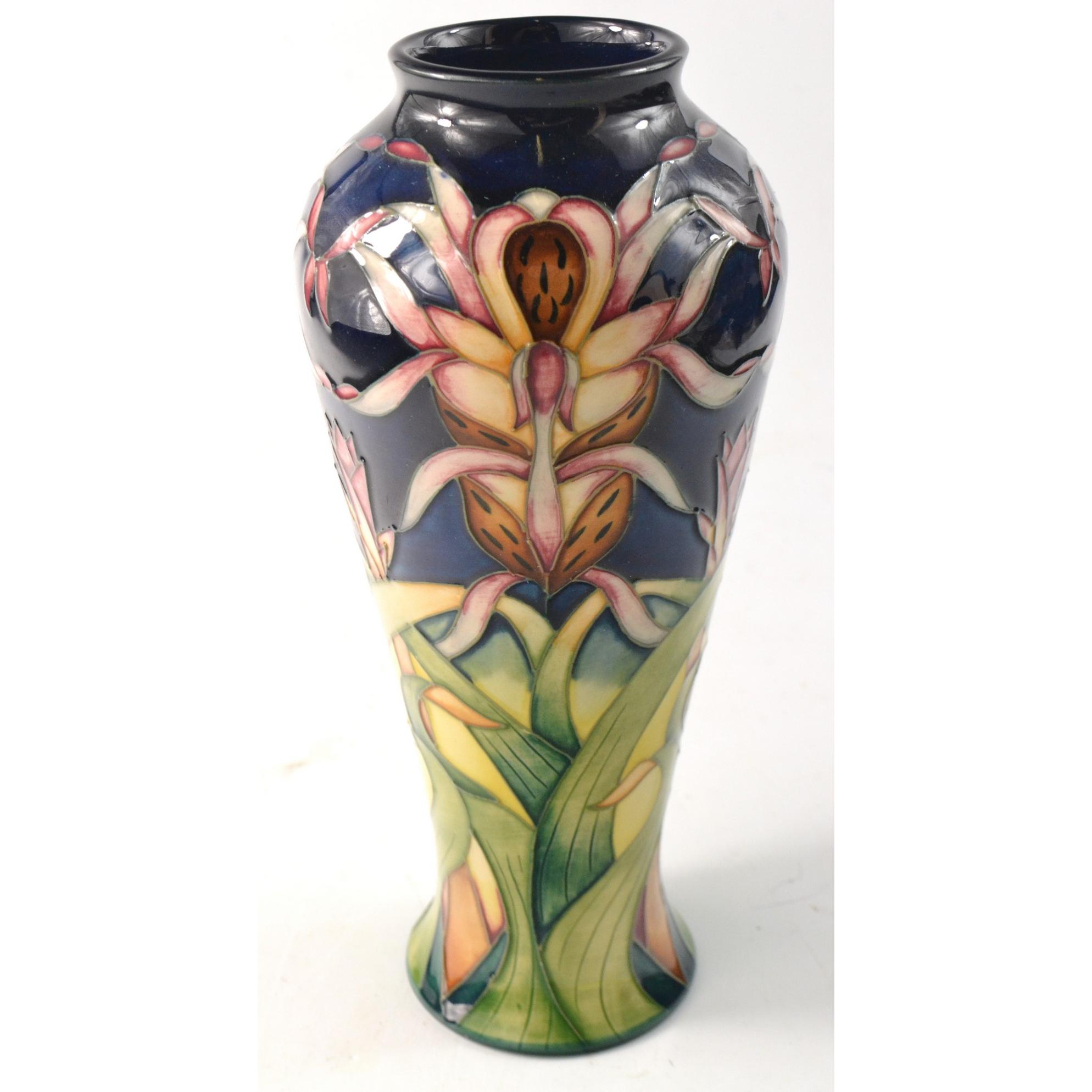 MOORCROFT blue based vase in 'Lizard orchid' design, part of the collectors club selection