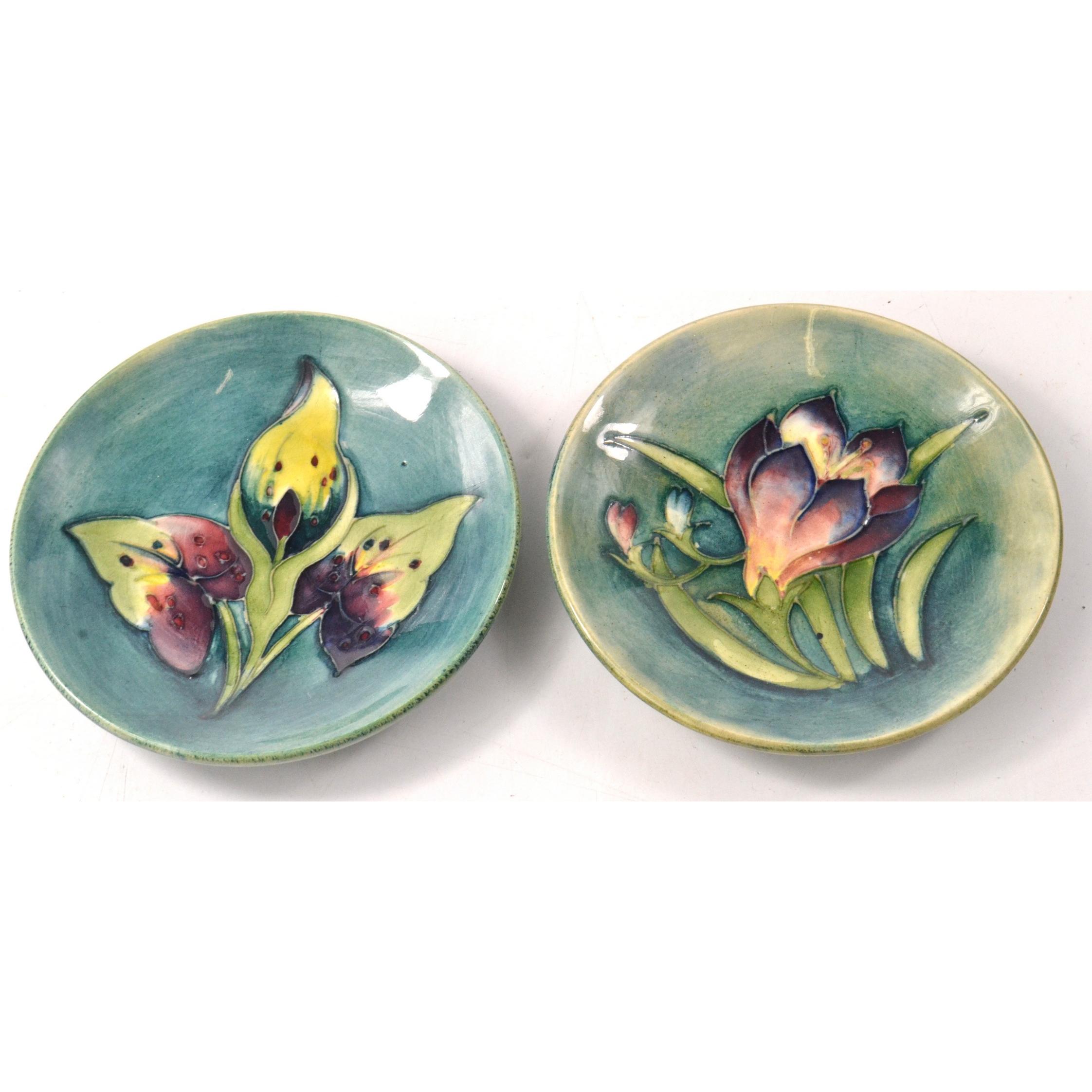 Two MOORCROFT pin dishes in sea green and sea blue colourways