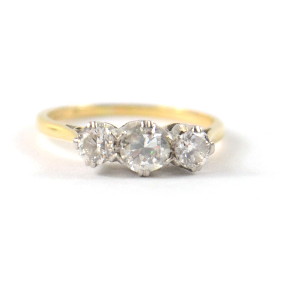 18ct gold 3 stone diamond set ring approx 0.8ct