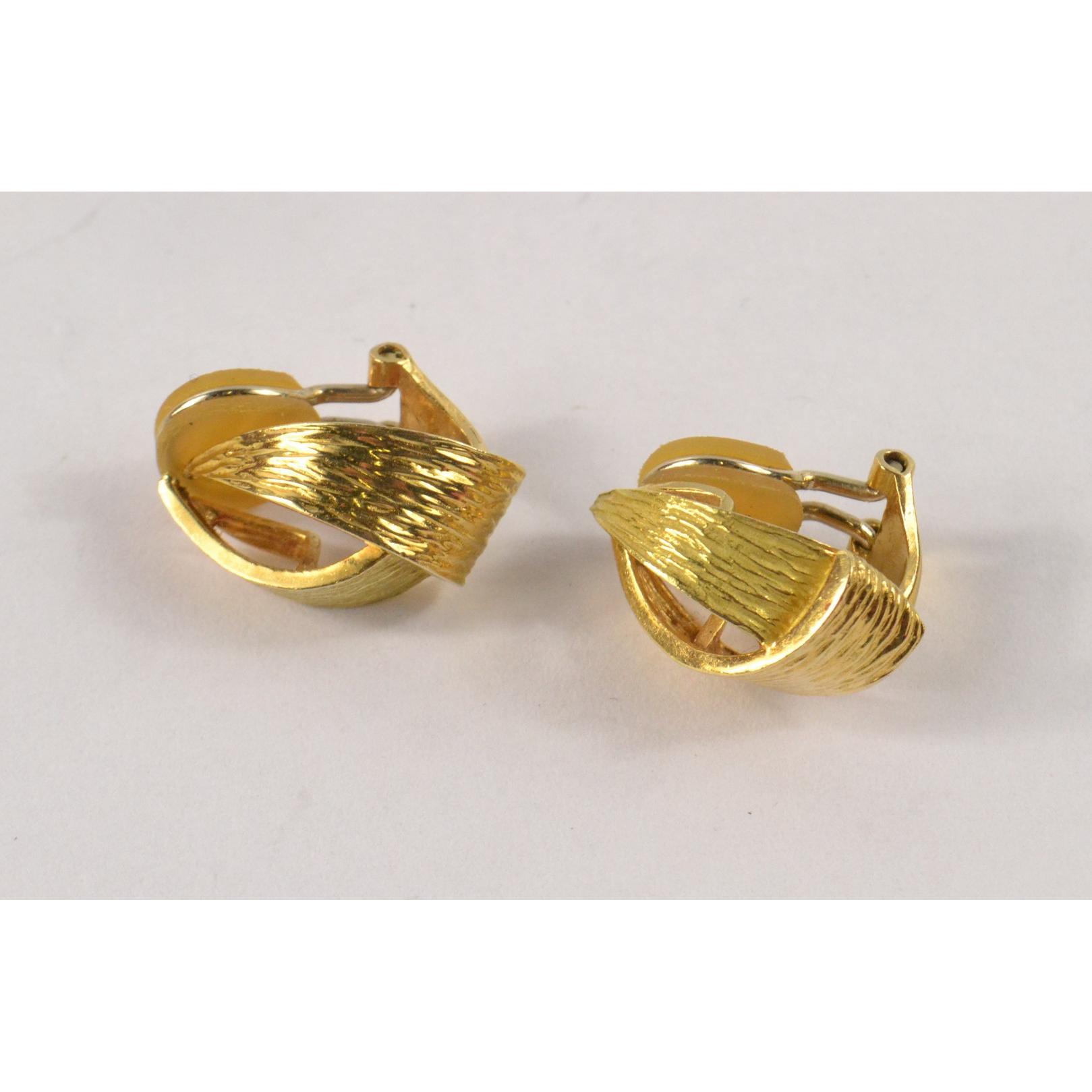 Pair of 18ct hallmarked clip-on earrings with bark effect design