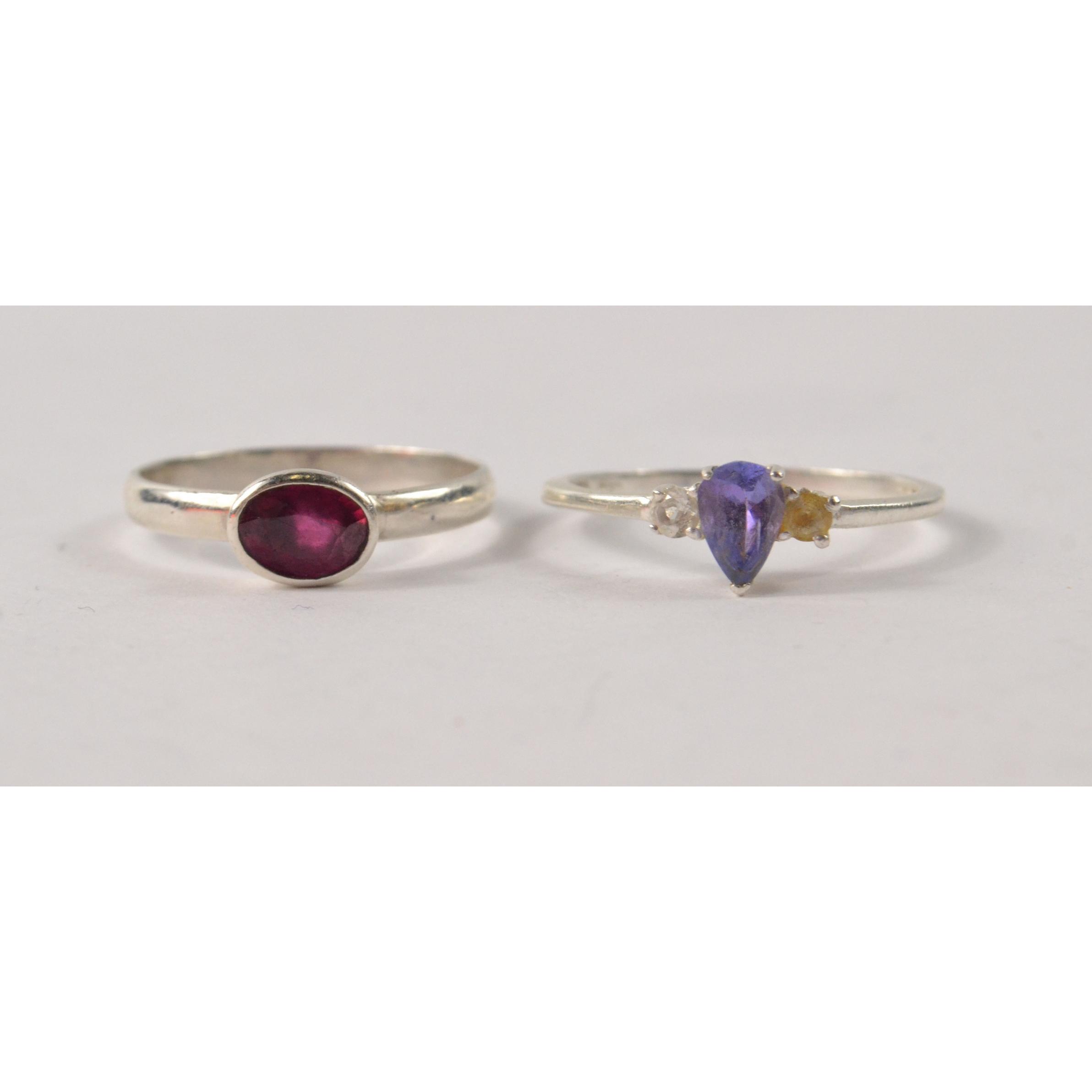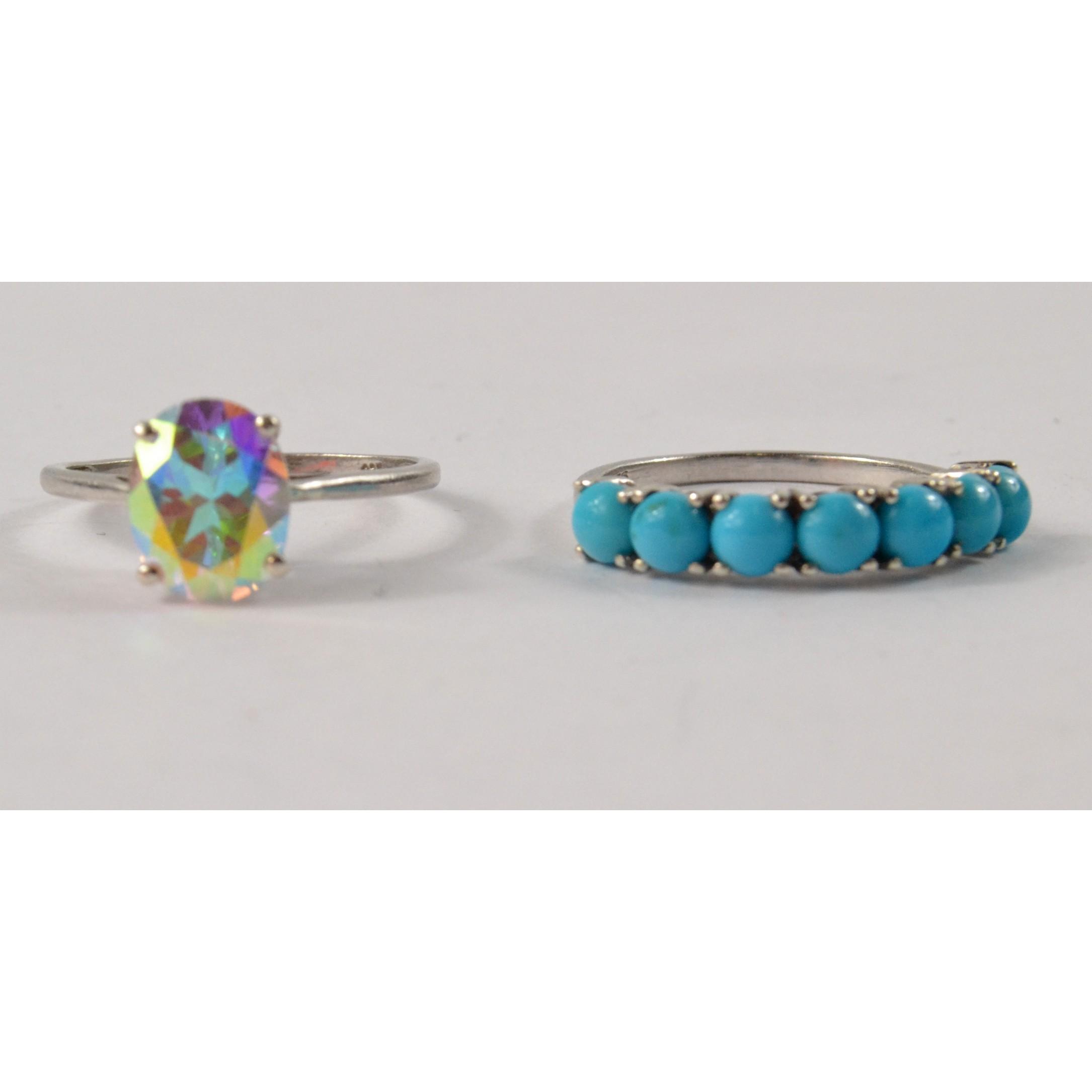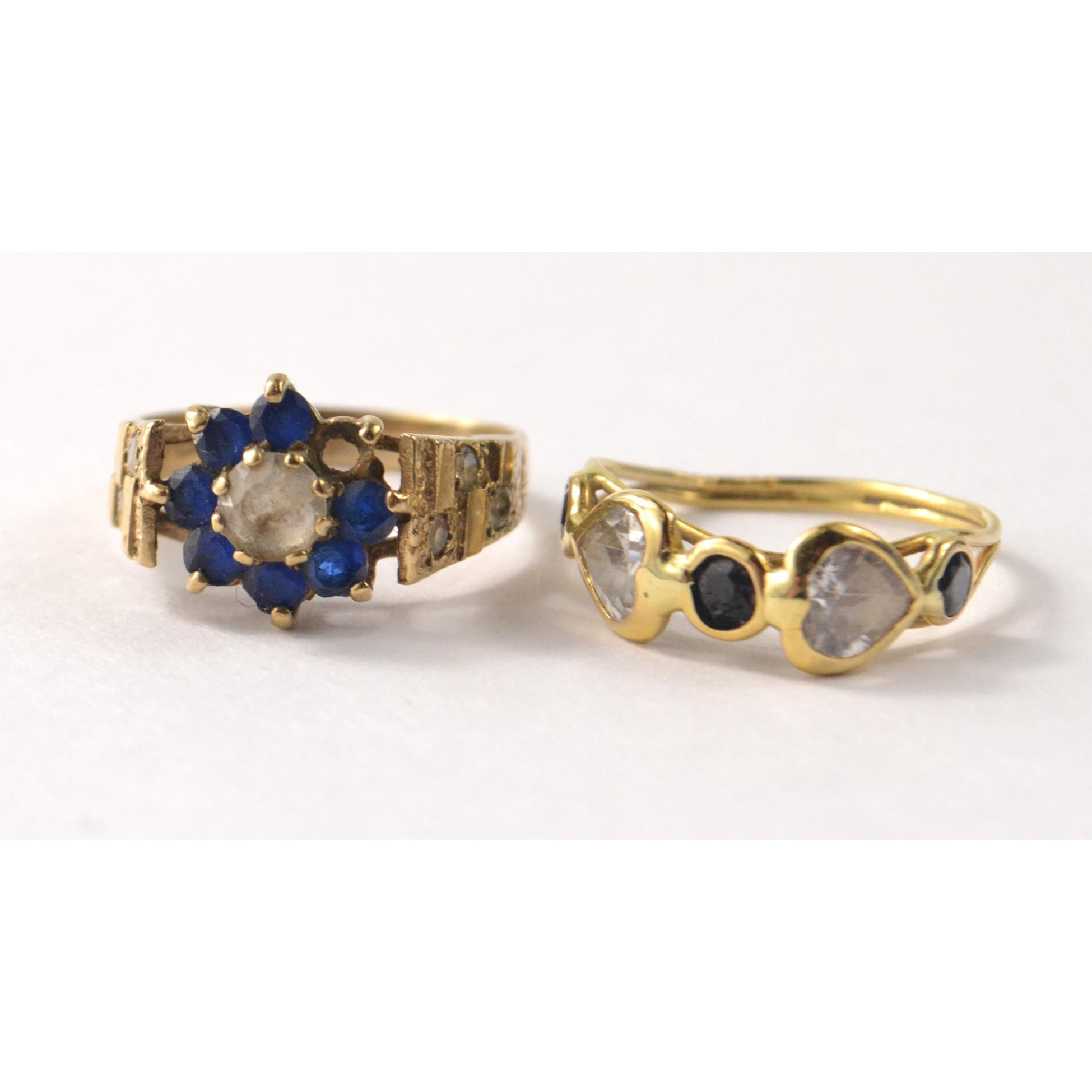 375 stamped gold ladies dress ring with clear and blue stone setting gross weight 2.07g size N also a 375 stamped gold centre clear stone with blue sapphires(one missing) gross weight 2.99g approx size L