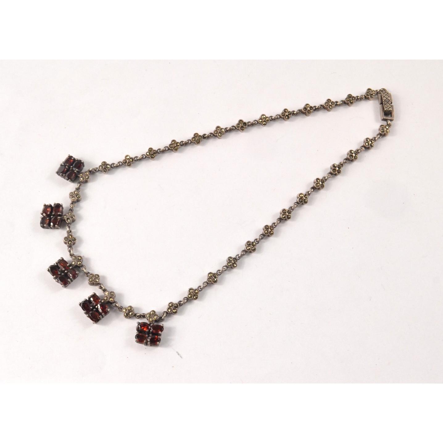 BEAUTIFUL! 9ct stamped early 20th century bar brooch, with star set garnet in box with safety chain 2.3g