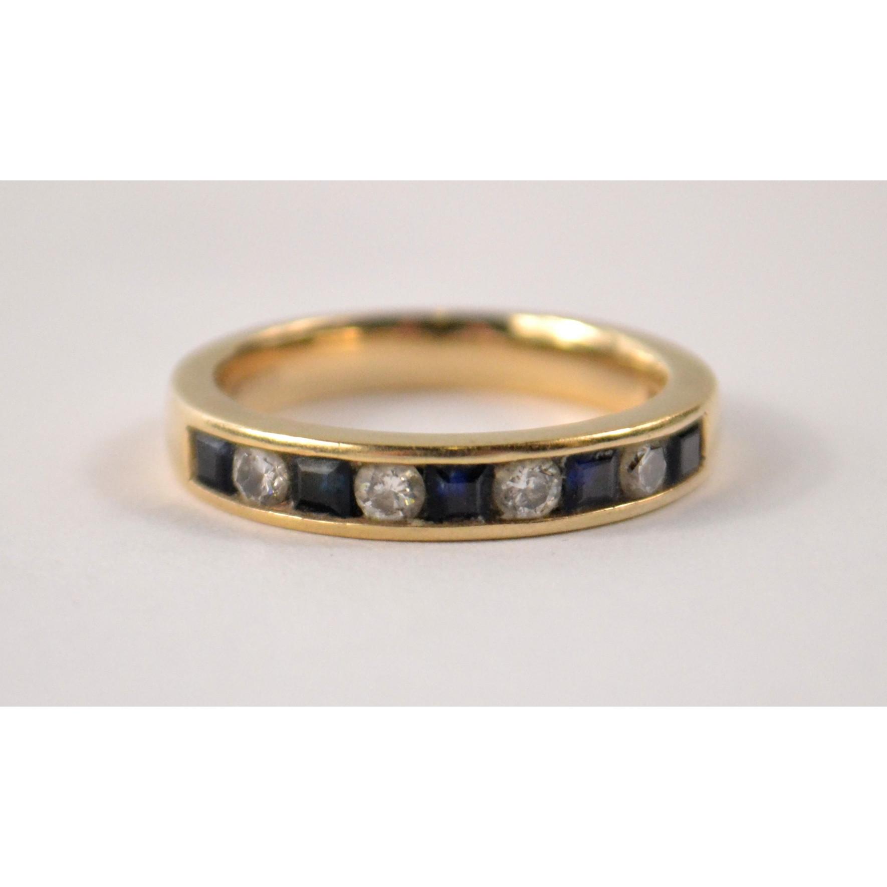 18ct Hallmarked yellow and white gold mounted saphire and diamond cluster ring