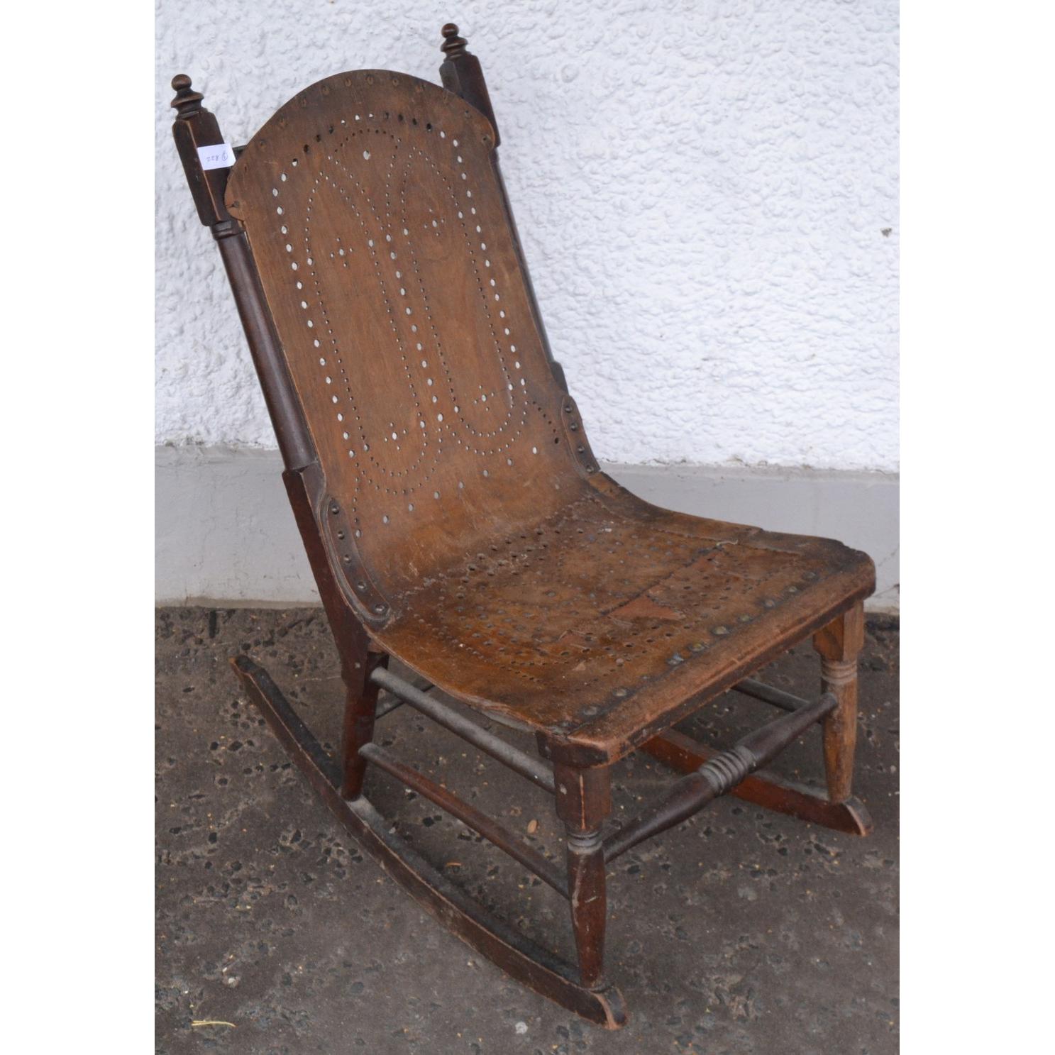 Unusual ! Early 20th Century rocking chair with pierced back and seats