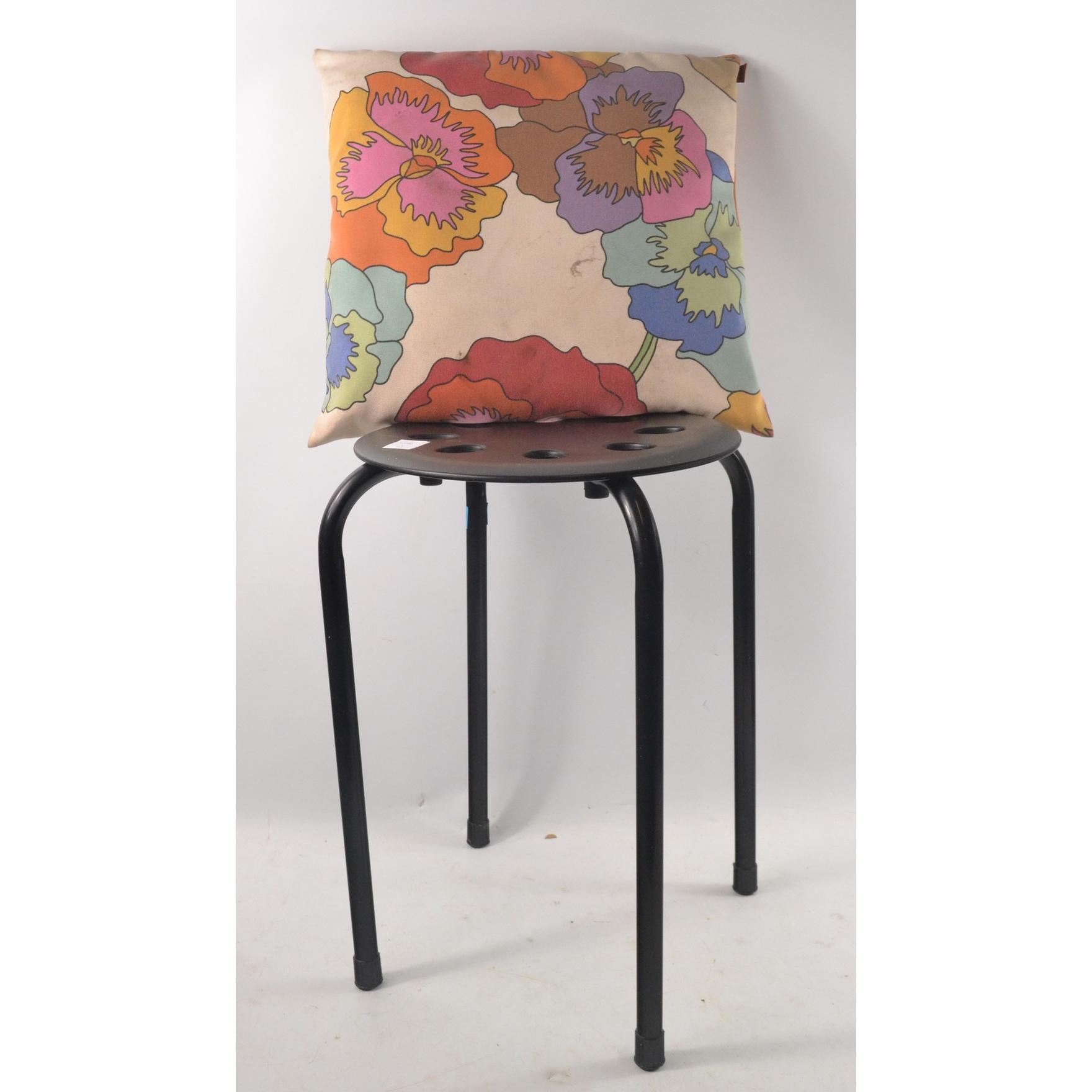Modern small black tubular metal stool with a pretty designer( craft shop bought) floral cushion