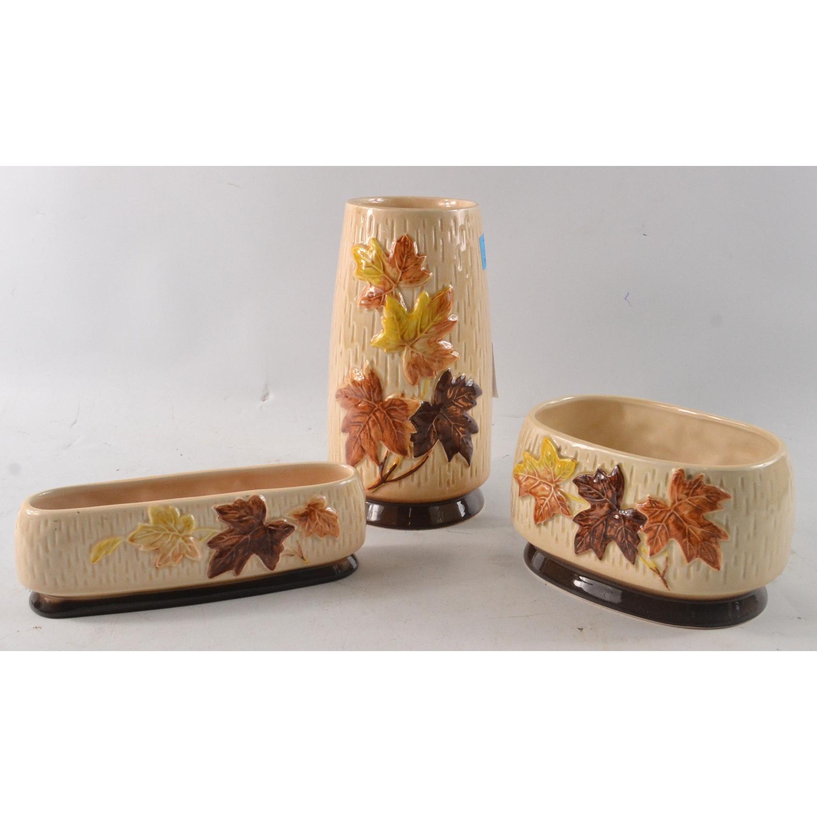 SYLVAC THREE FLOWER VASE SET WITH AUTUMN LEAVES highest item 21cm