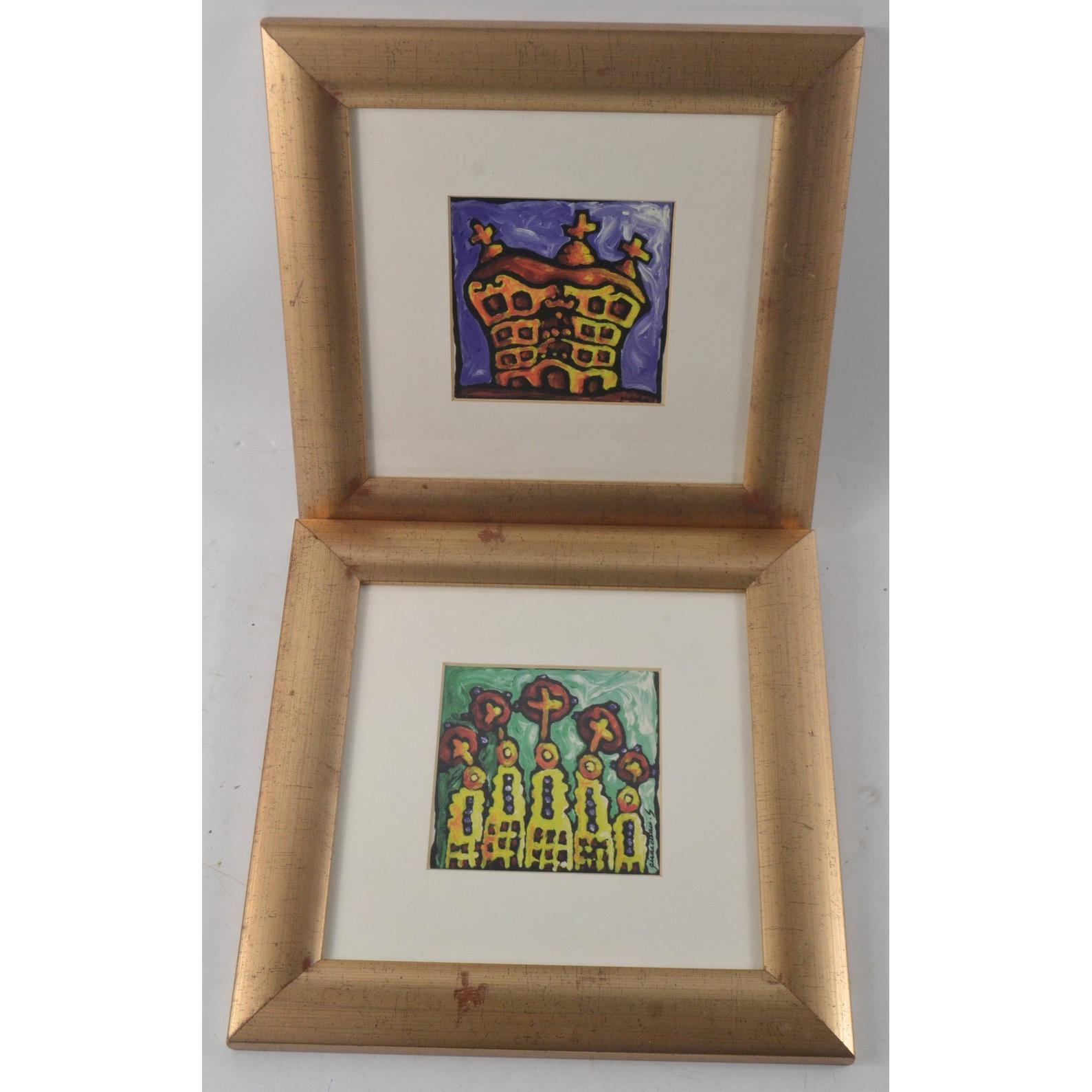 UNUSUAL! Set of 4 framed and glazed chalk on board abstract pictures by Samuel Robin Spark (son of famous writer Muriel Spark)