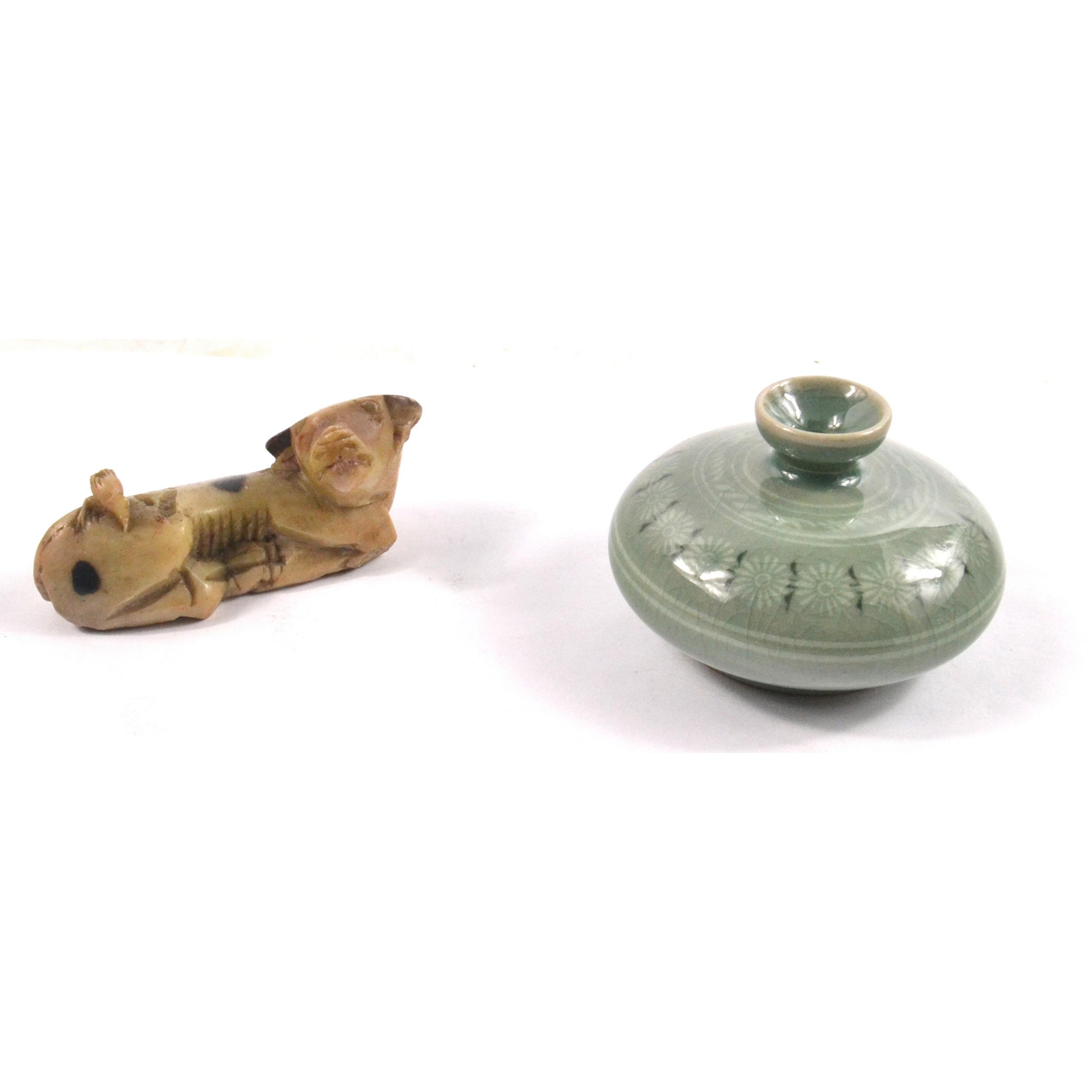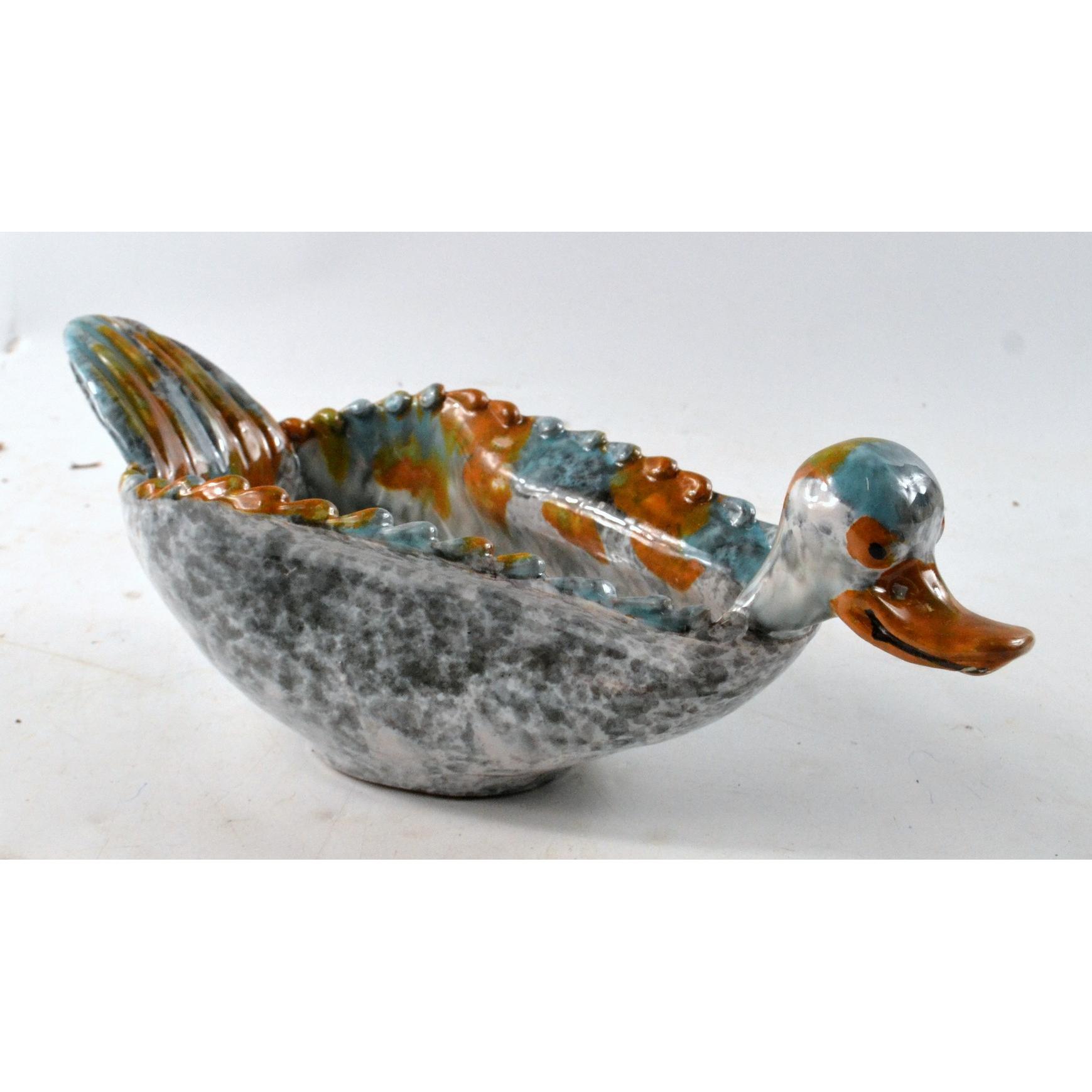A nice signed to base Scottish studio pottery glazed duck form novelty bowl