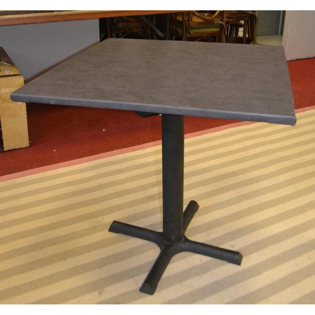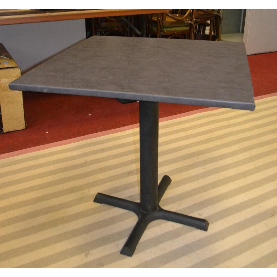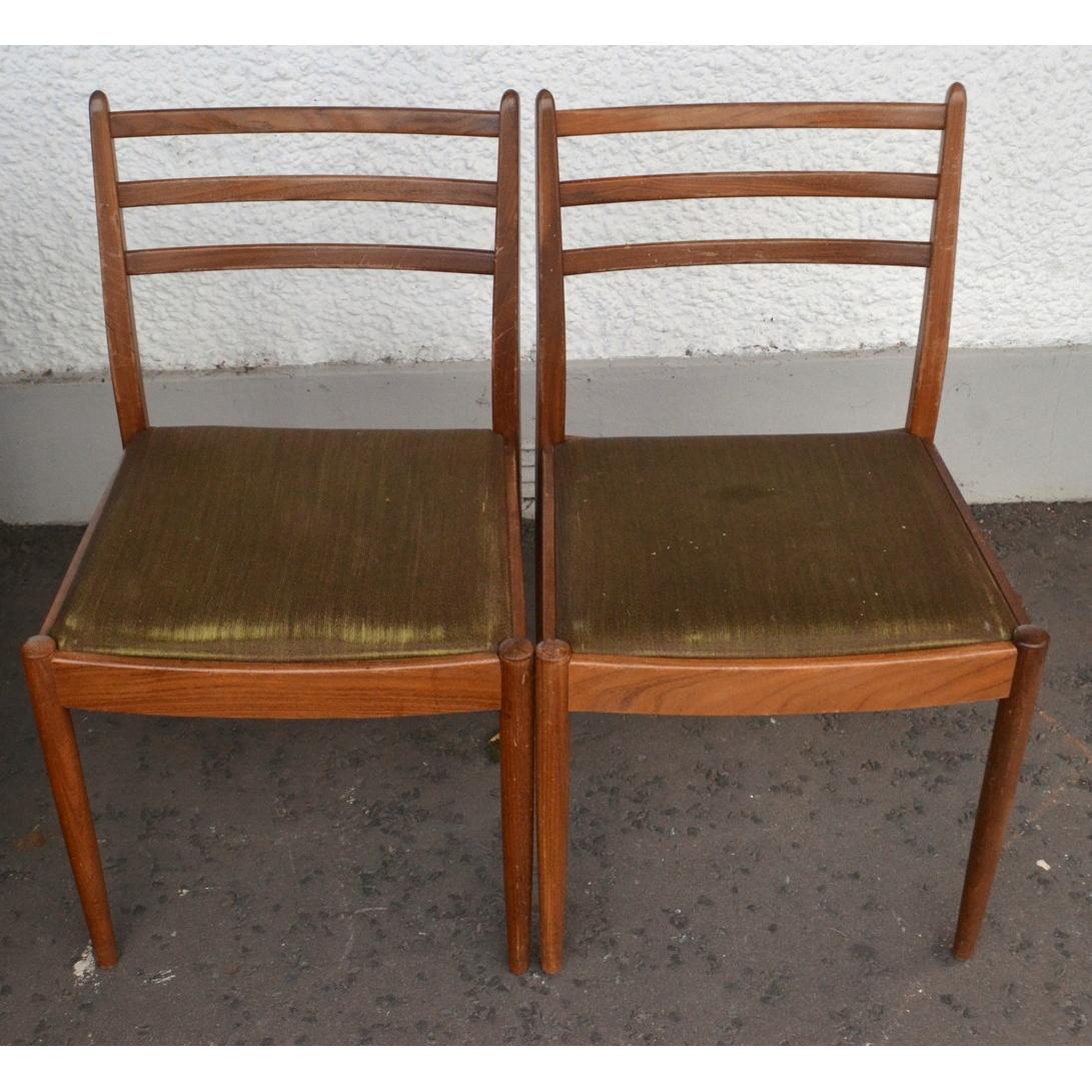 A modern white and stainless steel legged dining table and four white backed chairs, two swivel and two with four legs, slight wear and tear on chairs but a nice wee ensemble!