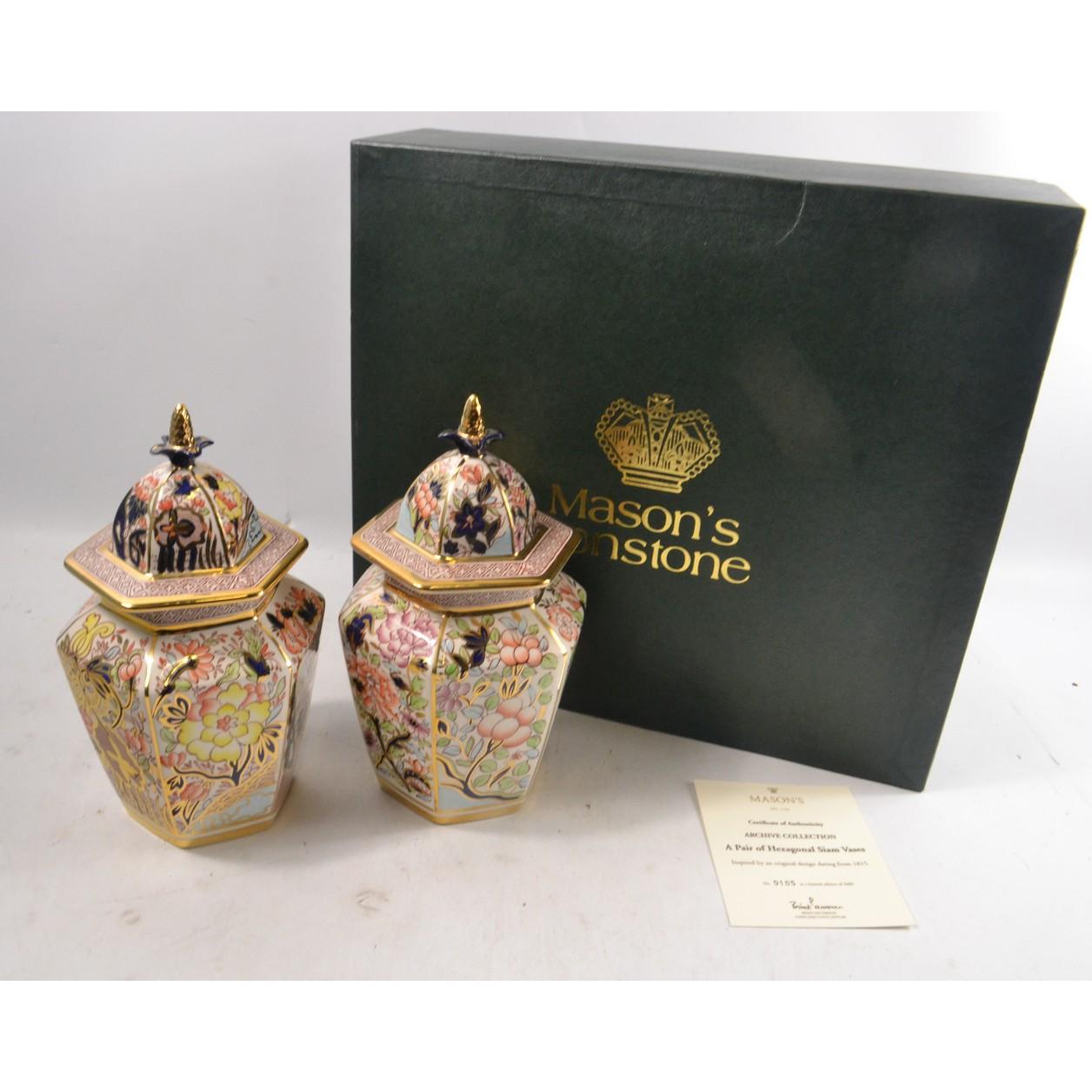 Two LIBERTY OF LONDON MASONS WARE decorative ceramic floral patterned jardinieres (largest one 19cm Height and diameter 21.5cm approx)