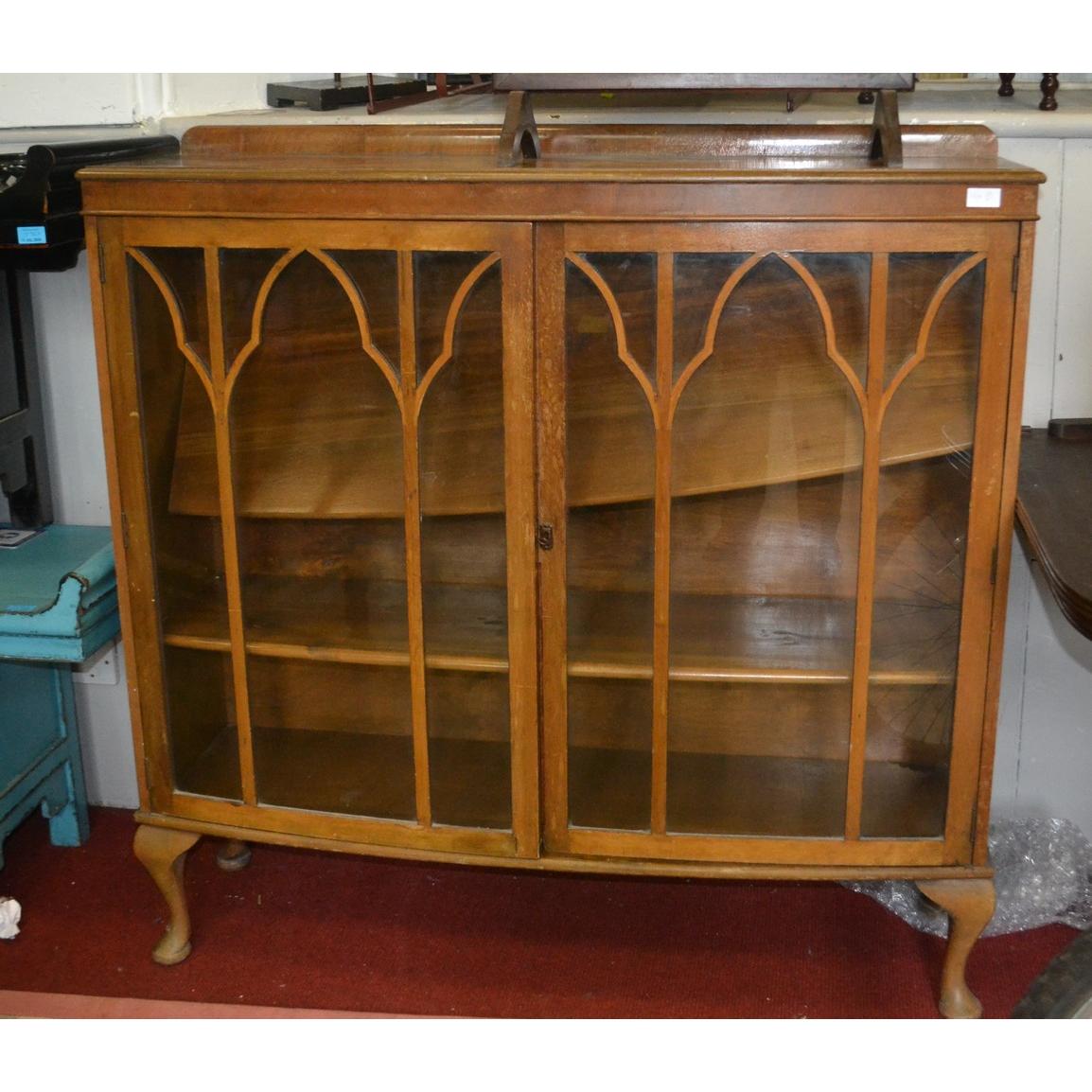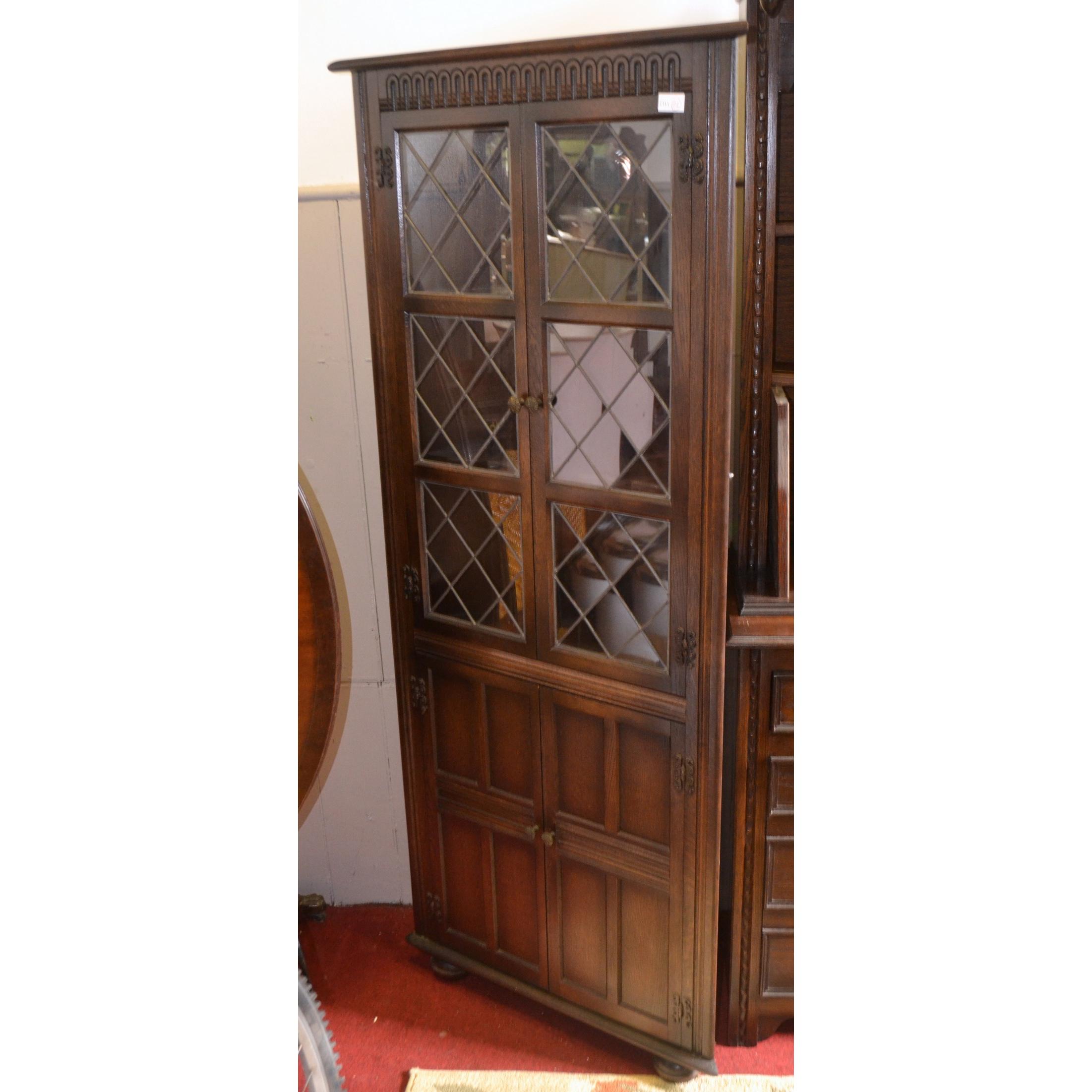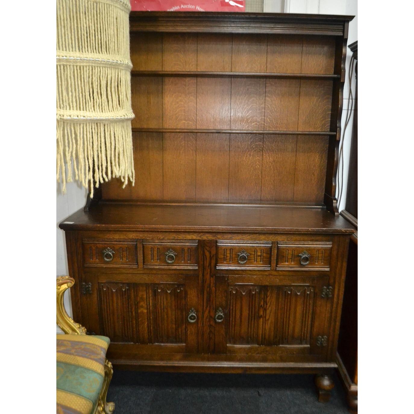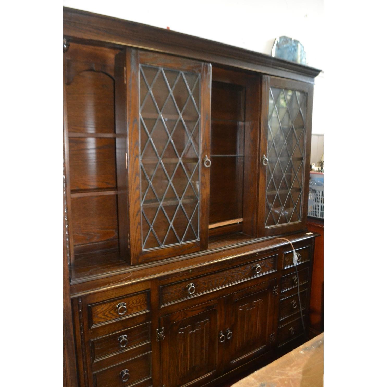 Large solid oak ERCOL STYLE DRESSER with unusual sliding glazed/shelved doors to reveal shelving! Quite clever design!