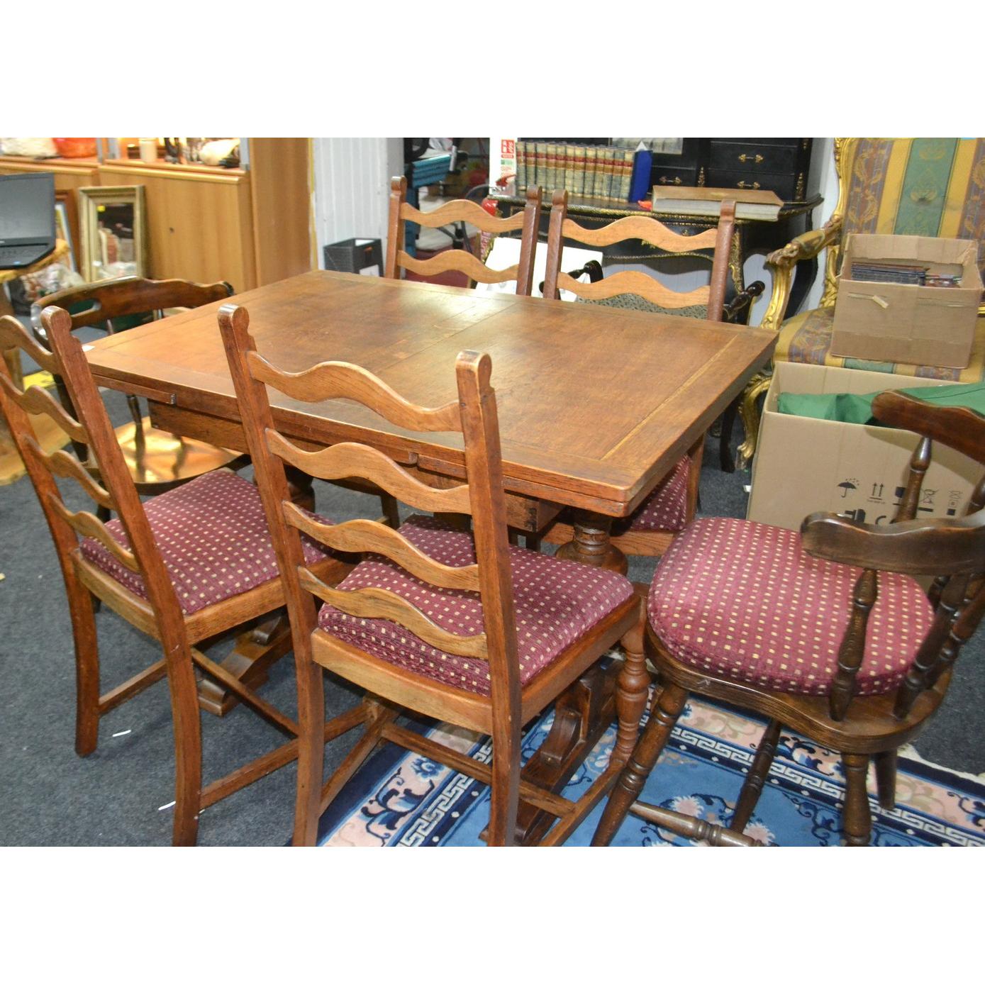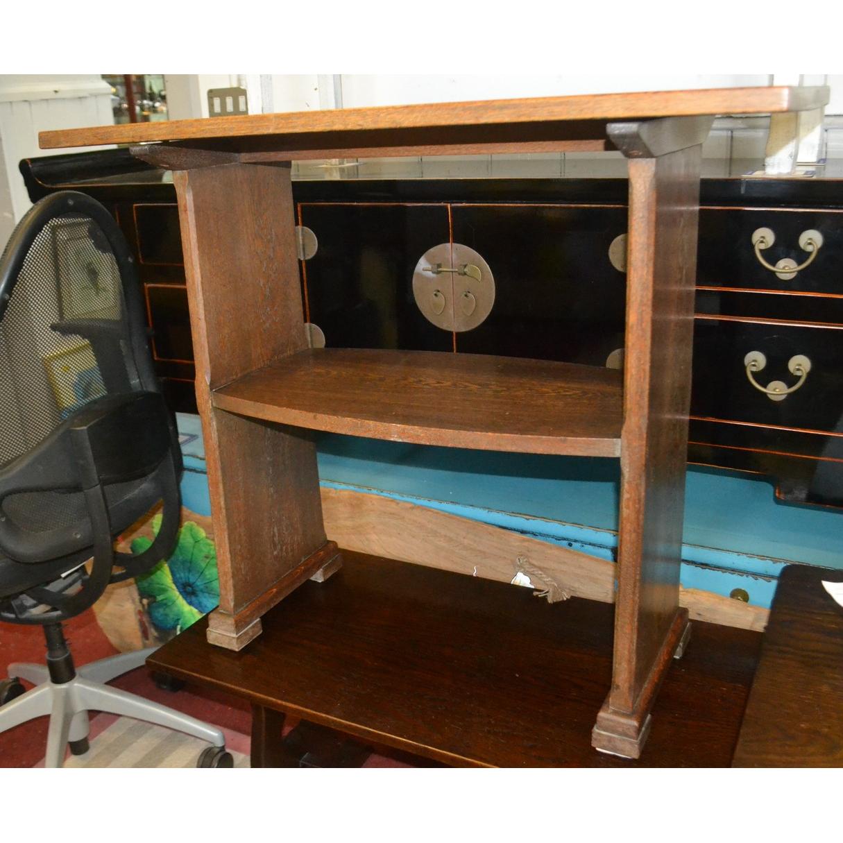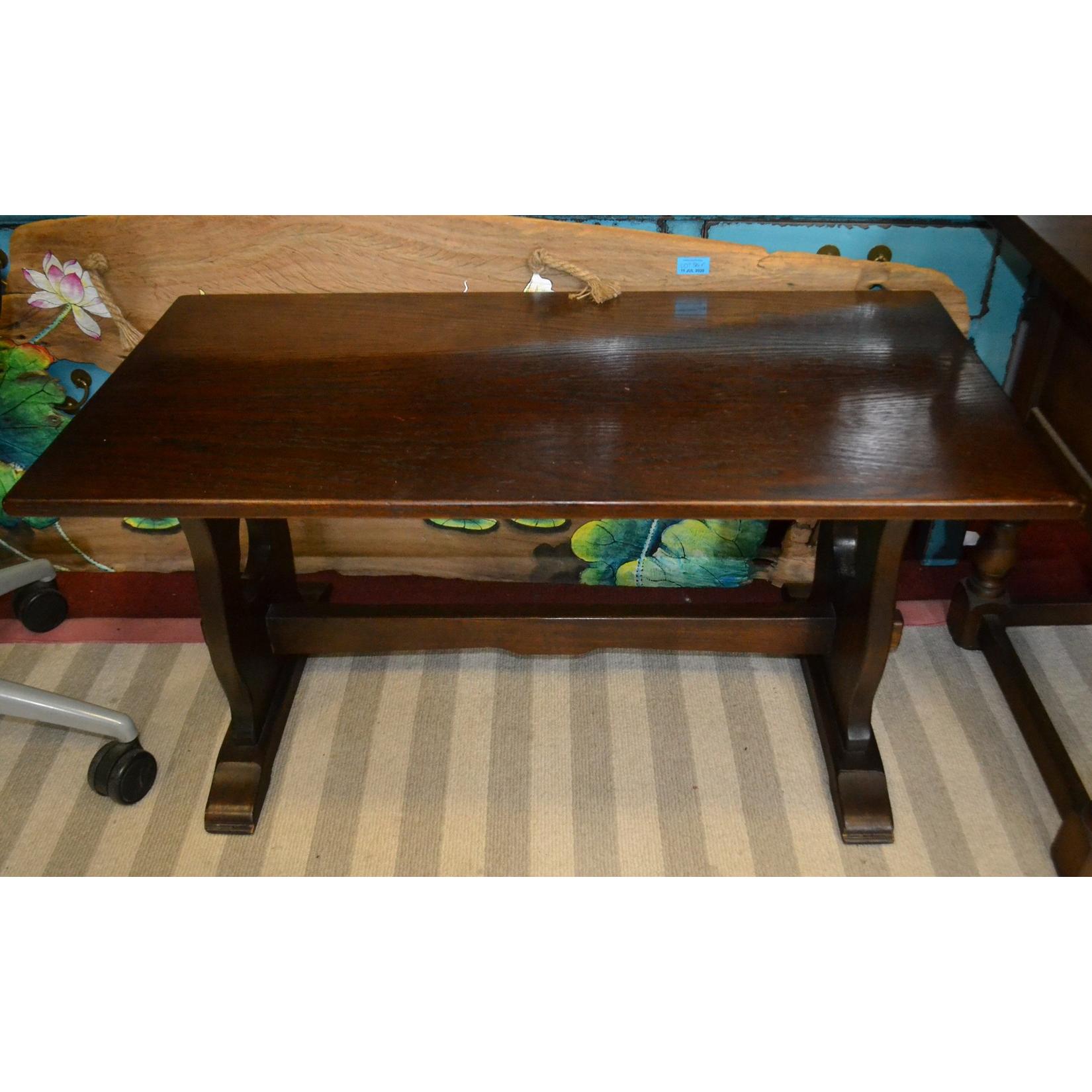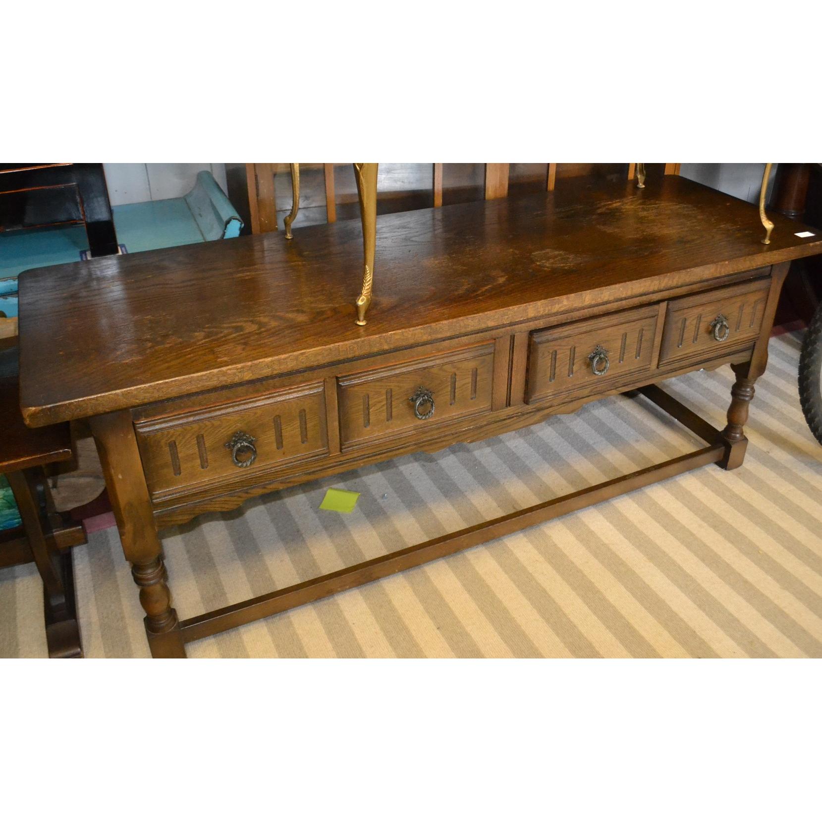 Solid oak period style low sideboard with two drawers on stretchered legs