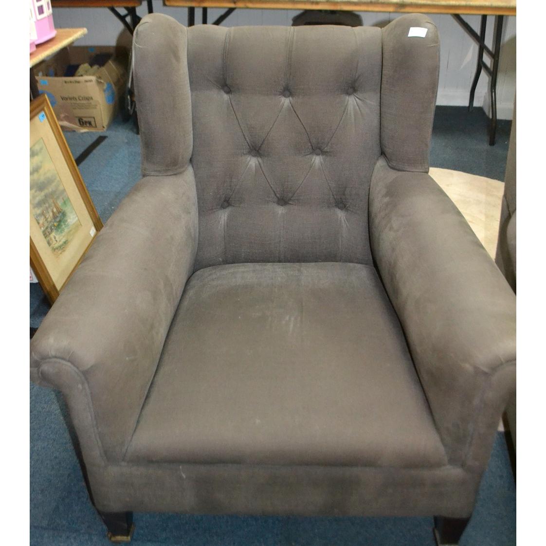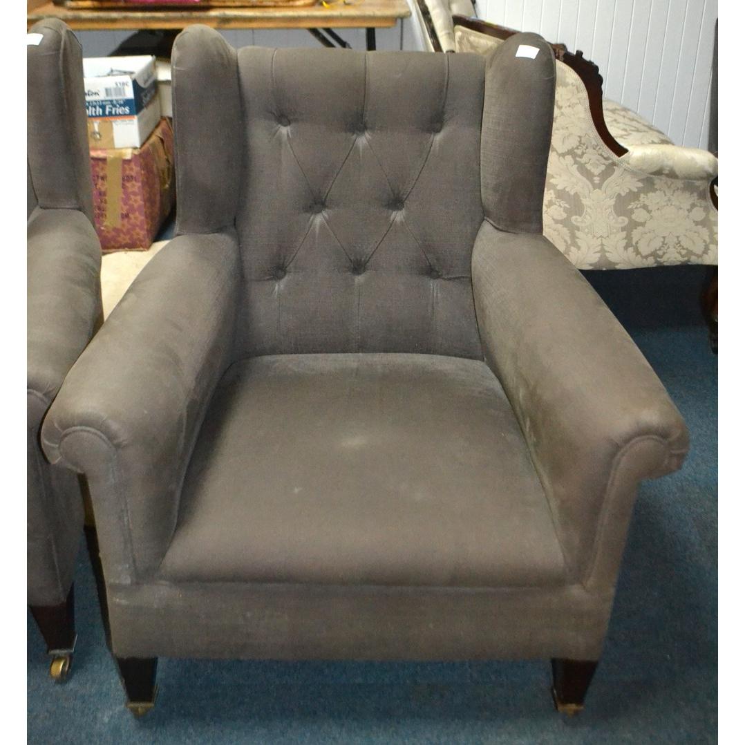 A SCOTTISH CLASSIC DESIGN CHAIR BY MARGARET BOYD INTERIORS OF GLASGOW design wing back COMFORTABLE contemporary chair in a heavy linen fabric