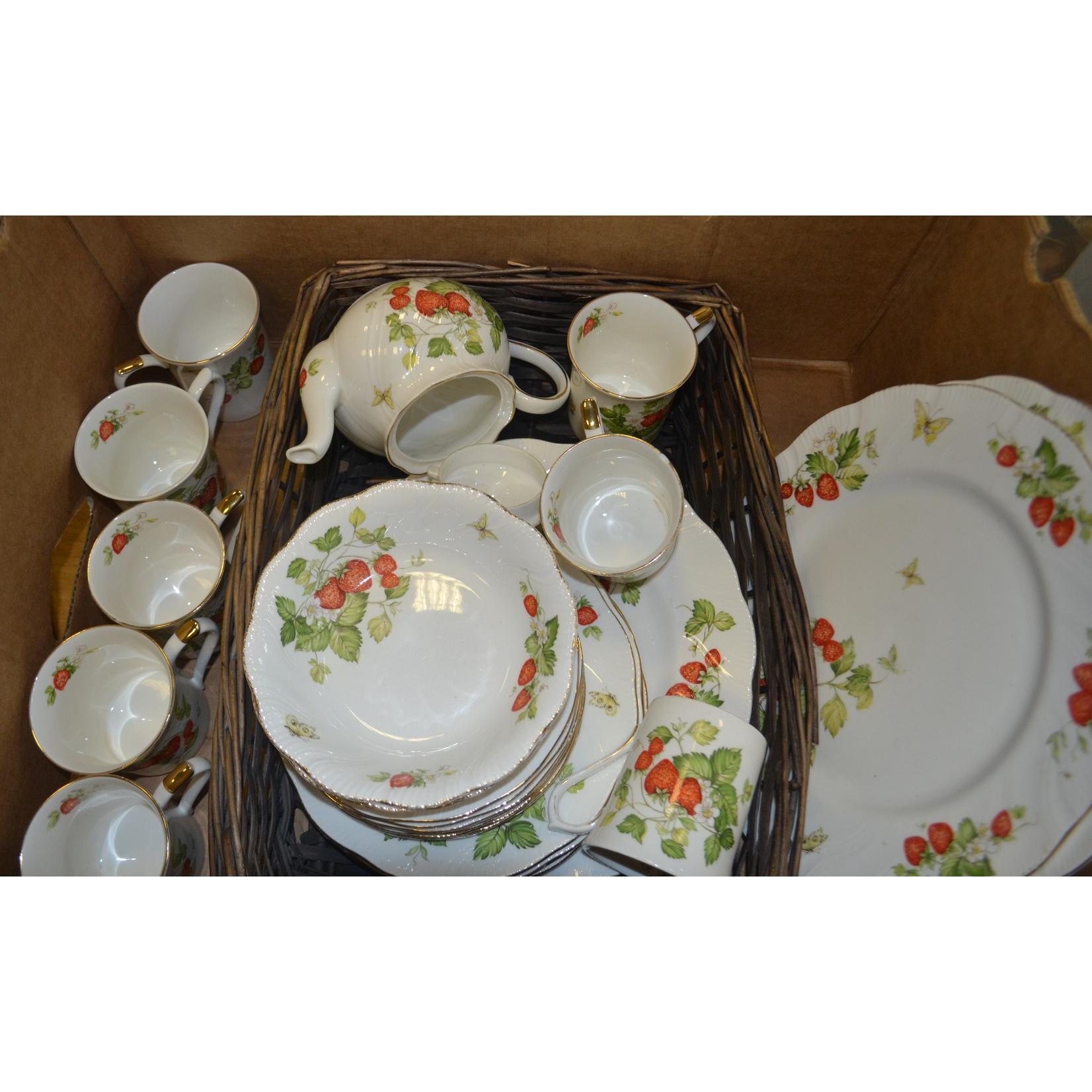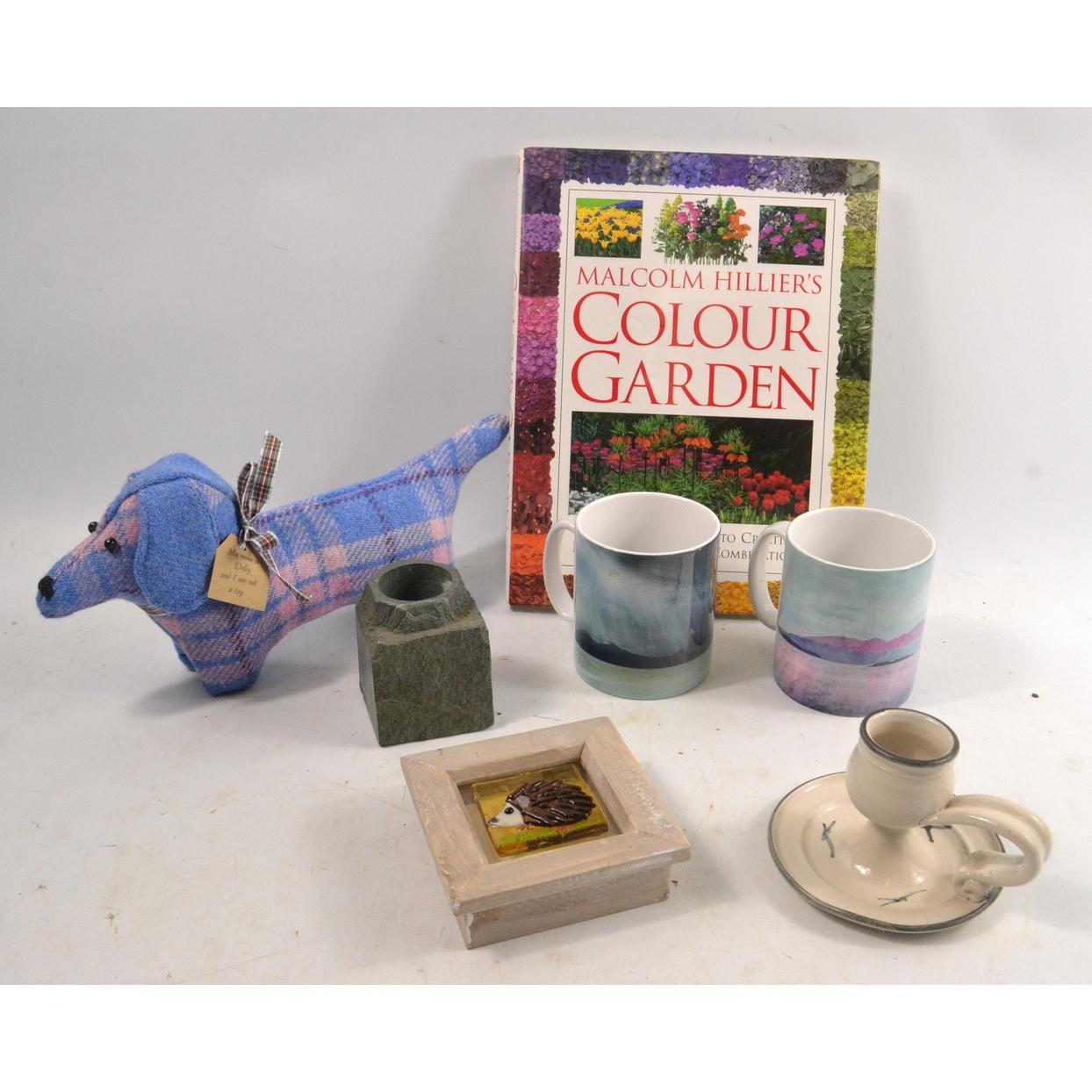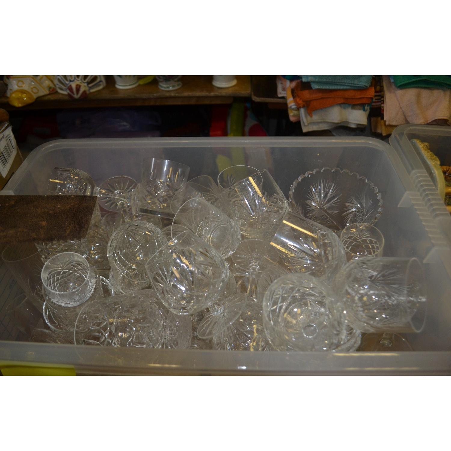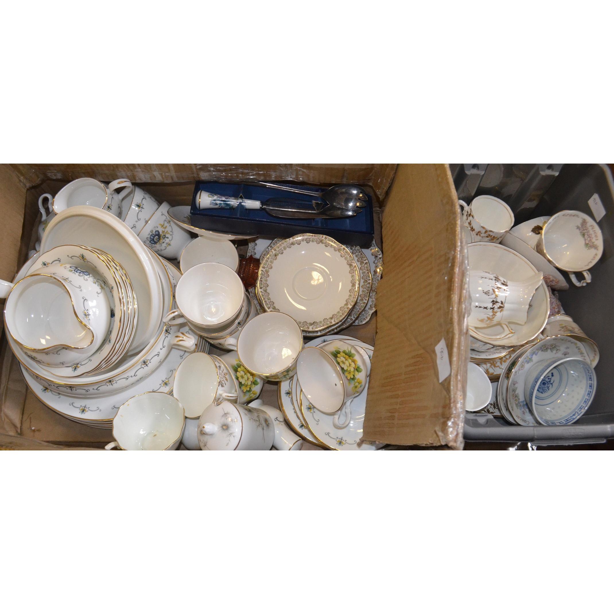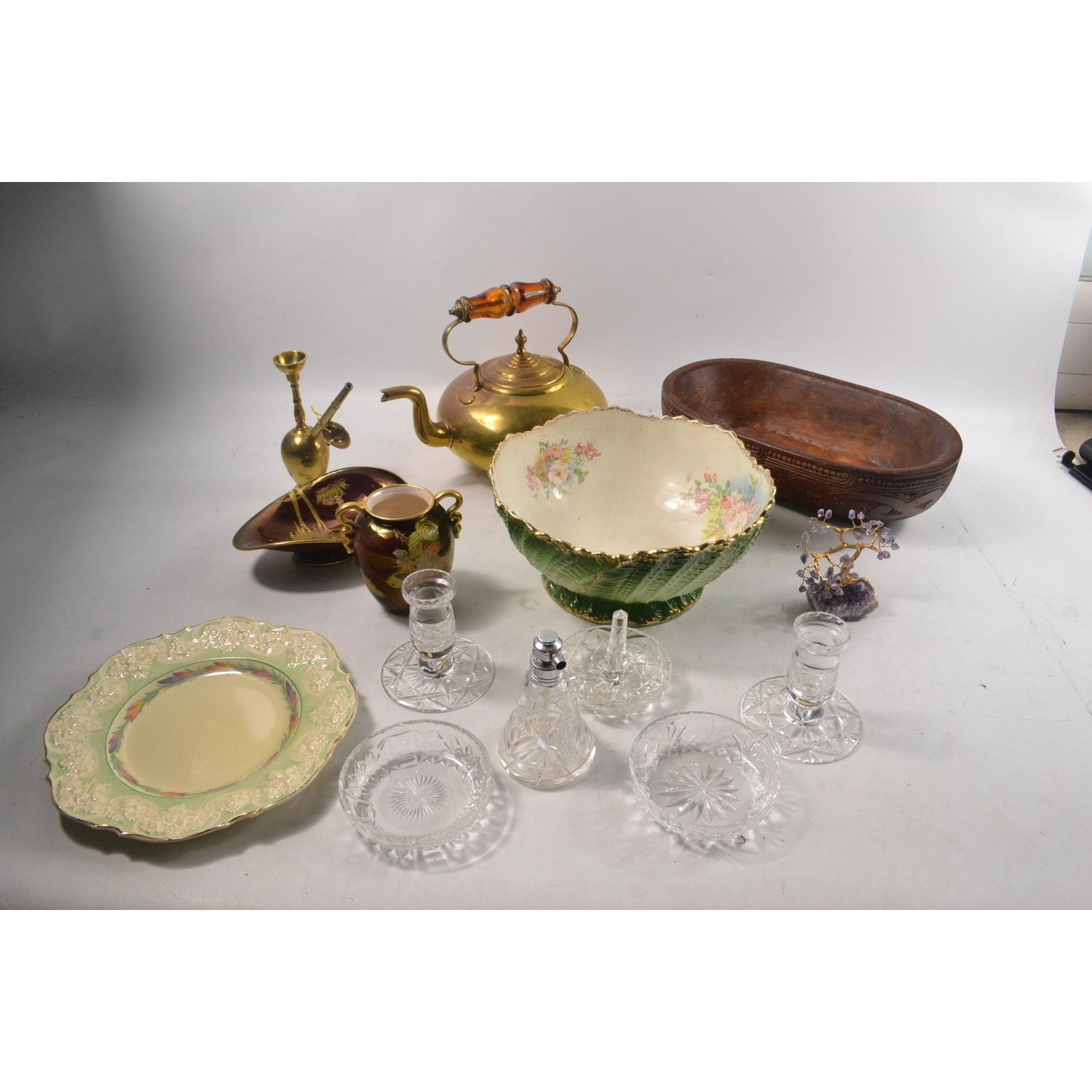 A mixed box to include vintage ceramics in CARLTONWARE and crystal items and a brass kettle etc etc
