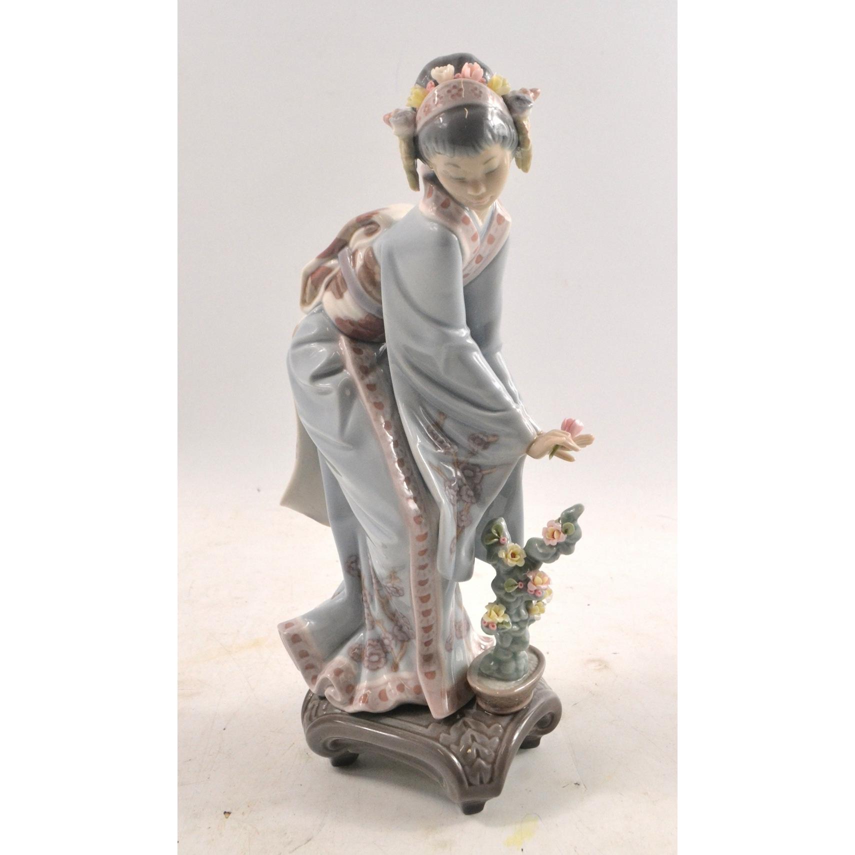 LLADRO figurine of a Young Japanese girl crouching over a Bonsai tree