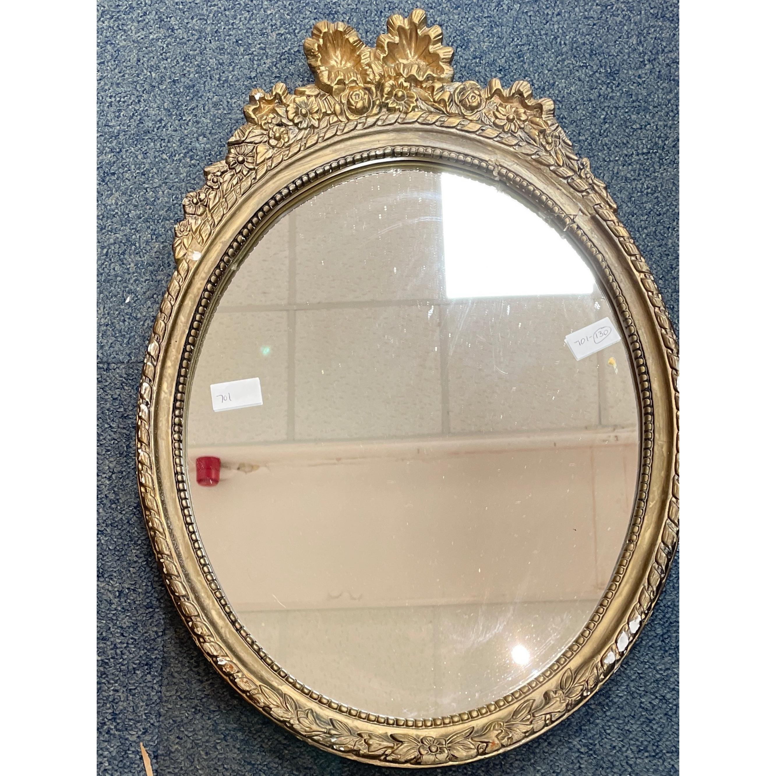 An oval gilt framed and bevelled wall mirror