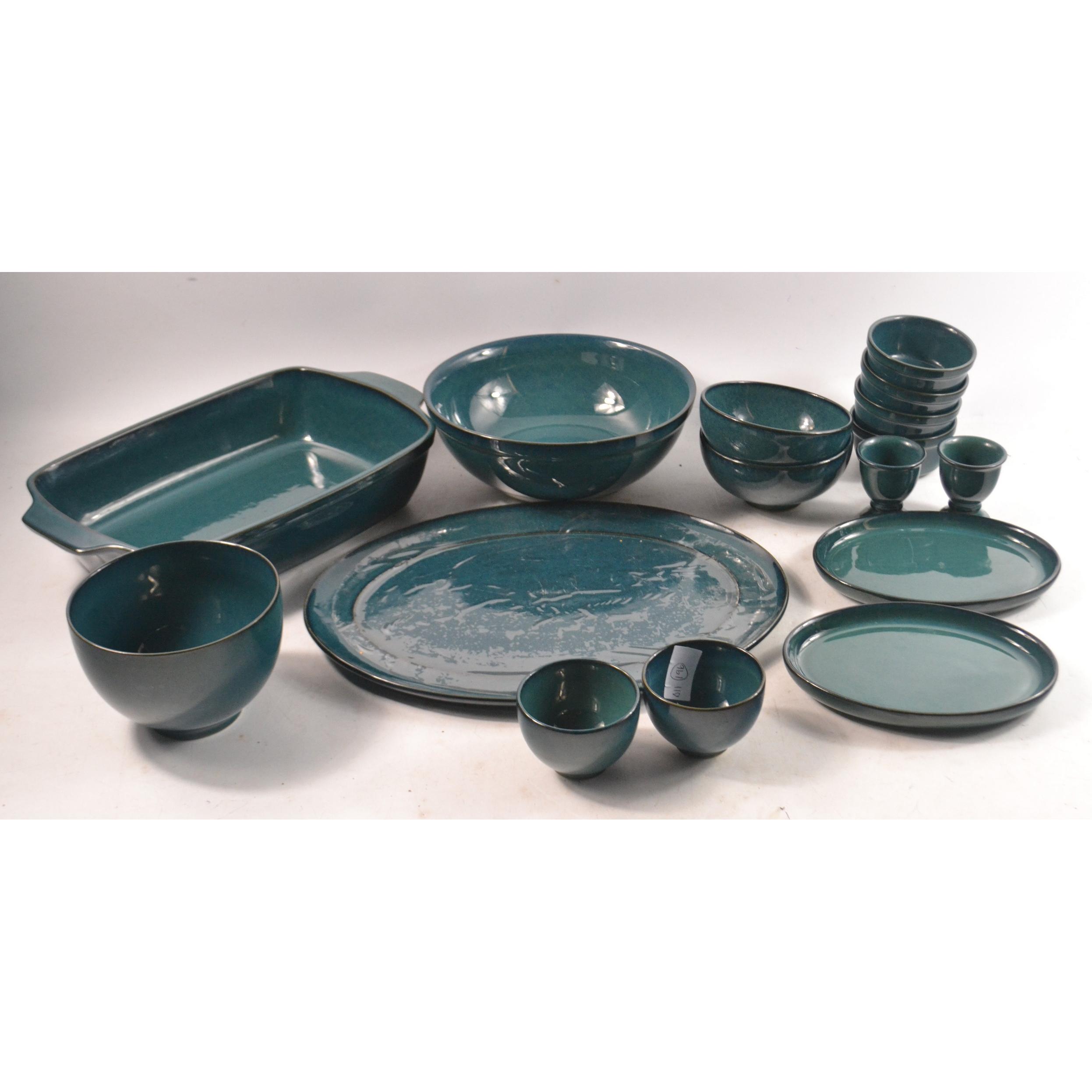 A small selection of green DENBY GREENWICH crockery to include cereal bowl, platter, serving bowl etc etc